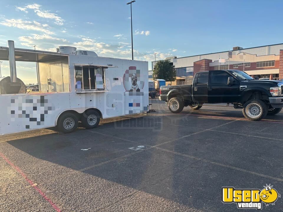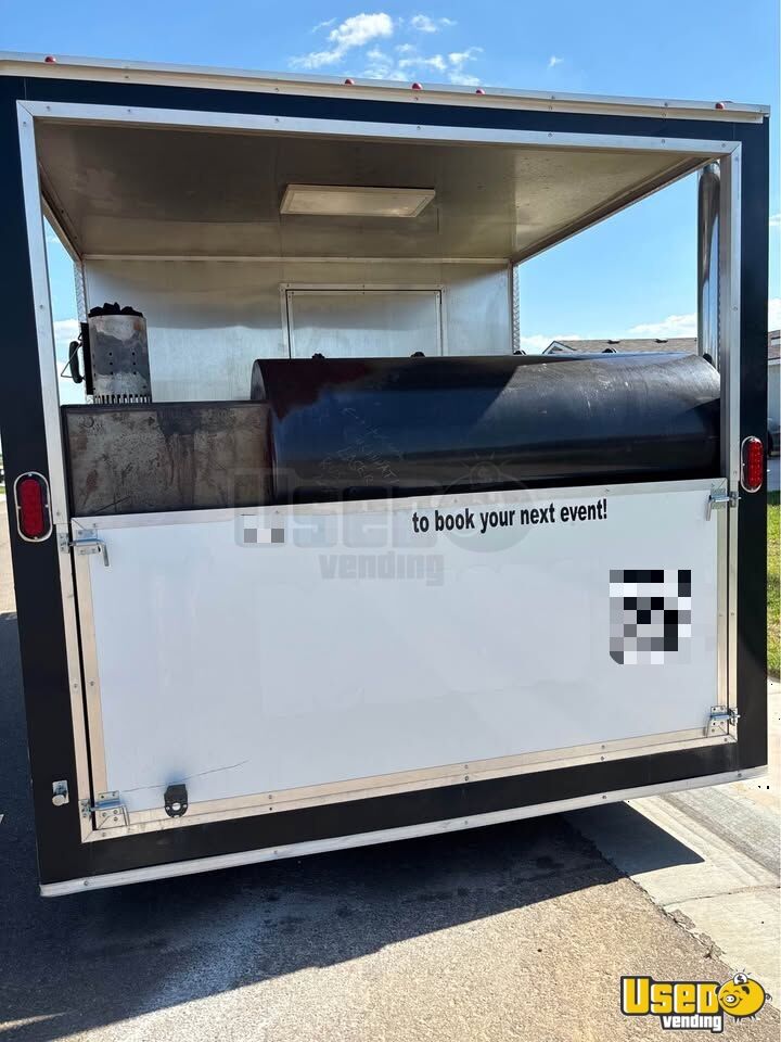 This barbecue food trailer with an integrated smoker is well equipped for professional cooking on the go. In good condition, it features a fully enclosed kitchen, new tires, and a recently installed electronic jack, making it a dependable option for any mobile food operation. Interested? Call us now!