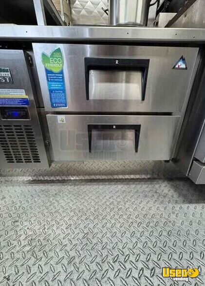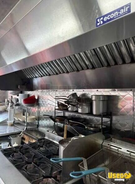 Standout attributes include: - Dual concession windows - Stainless steel walls and diamond-plated flooring - Air conditioning and roof-mounted vent hood - Complete 3-compartment sink system with large water tanks - Full line of commercial cooking and refrigeration equipment - Approved by Washington L&I