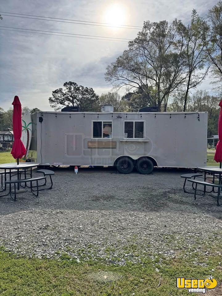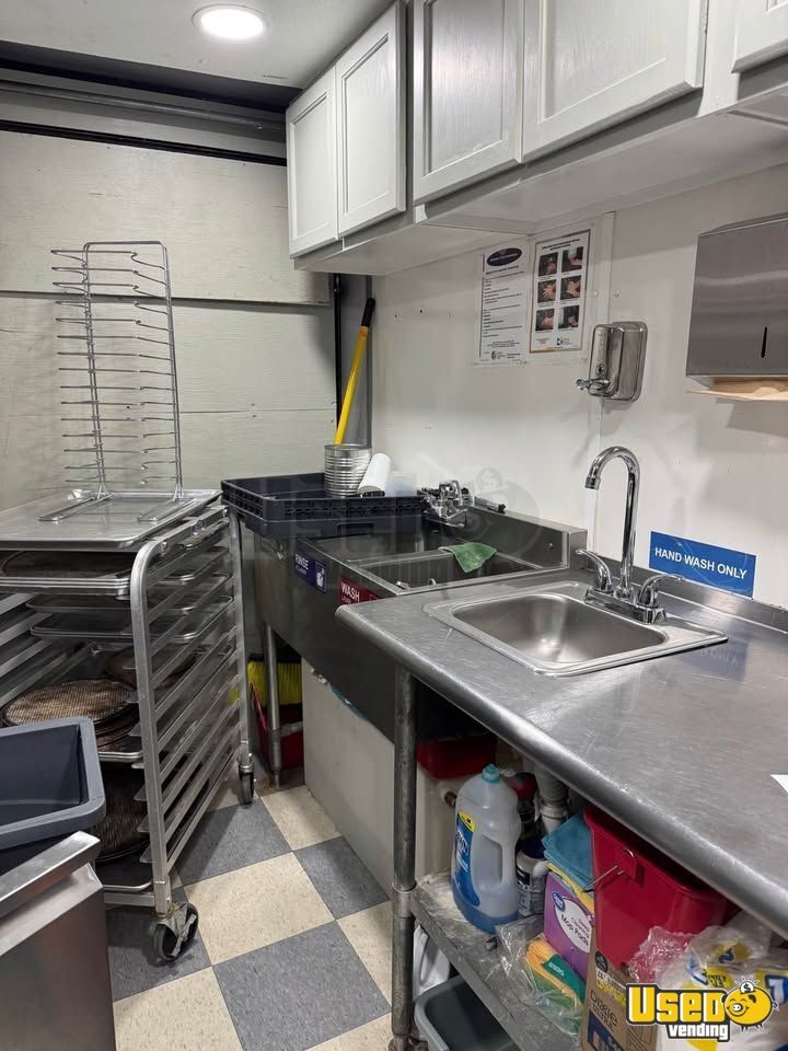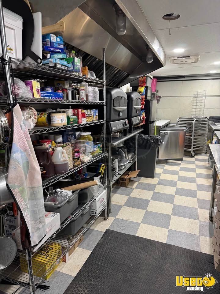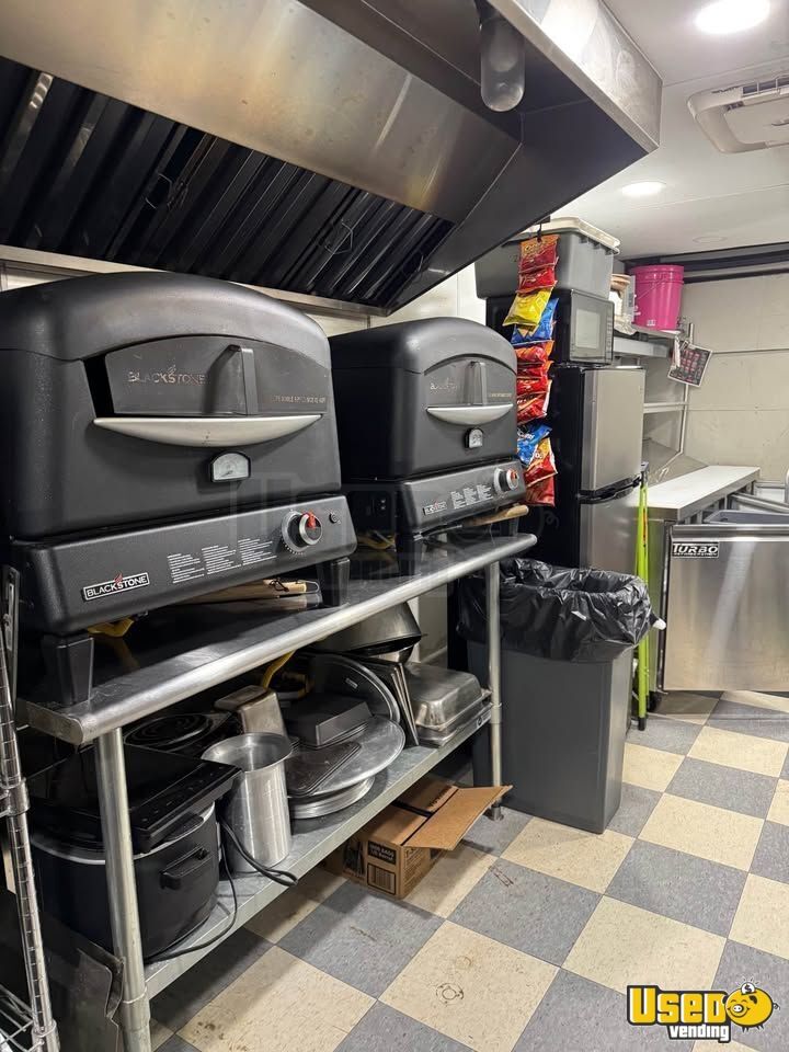 Standout features include: - Dual A/C units for comfort - Two Blackstone pizza ovens - Full-size refrigerator, deep freezer, and 6’ prep cooler - Stainless prep tables and shelving - Triple sink and hand-washing station - 8’ exhaust hood with fan and fire extinguisher - Dual propane tanks and 50-amp power cord