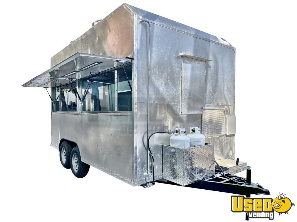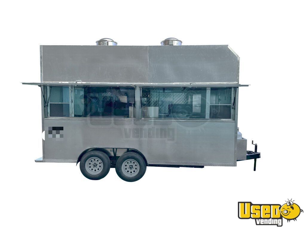 This 14' custom kitchen trailer is Health Department approved and comes ready for operation. Maintained in good condition, it features an aluminum exterior and blueprints for easy setup, making it ideal for immediate business use. Don't miss out, call us now!