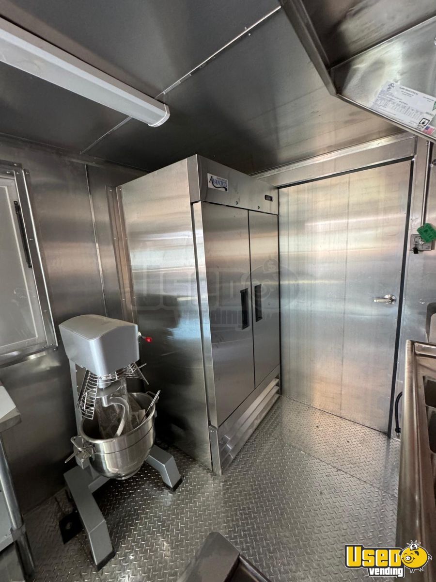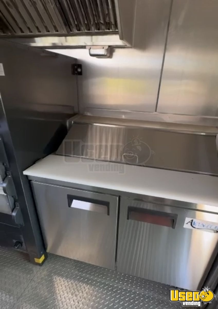 Standout features include: - Ceiling air conditioning - Two concession windows - Stainless steel wall covers - Peerless pizza oven - Vance refrigerator - Avantco prep table - Mixer, work table, and fire extinguisher - Hand-washing and double sinks - Manual transmission with diesel engine