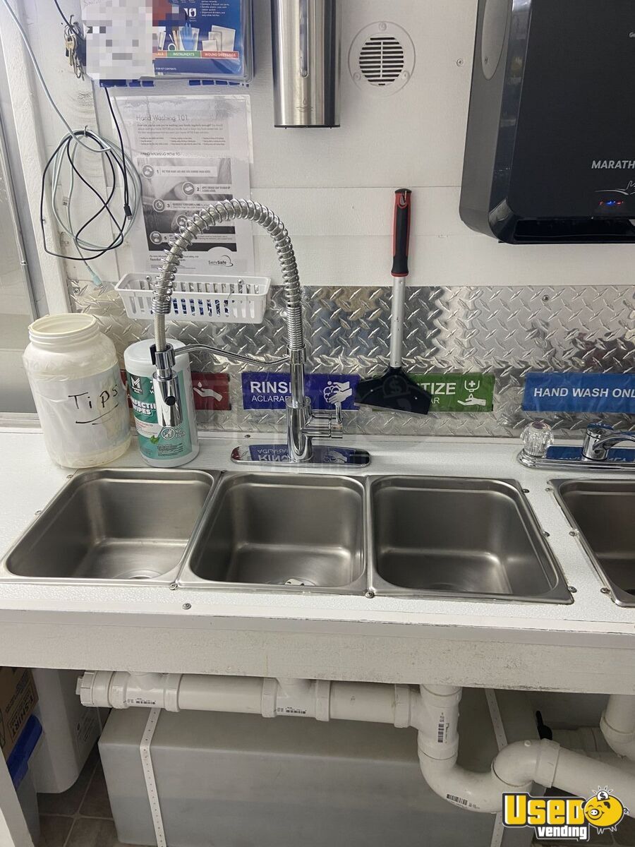 Standout features include: - Rear air conditioning and LED interior lighting - Westinghouse generator (18,000 peak watts) - Thompson refrigerator and freezer - Flat grill and 4-ft exhaust hood with Ansul fire suppression - Triple sink, handwashing sink, and 20-gallon fresh water tank