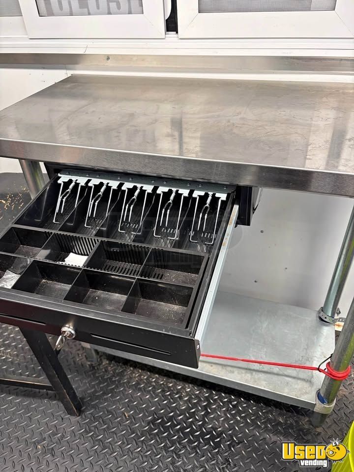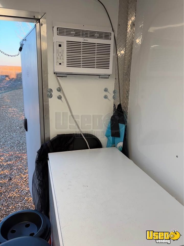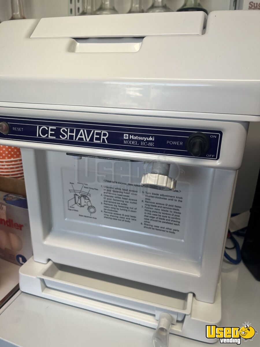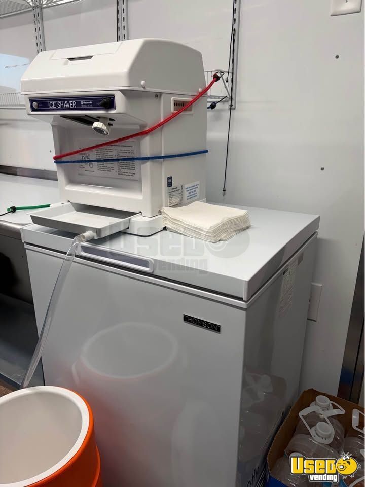 This shaved ice trailer is equipped and ready for operation. Designed for efficiency, it features a spacious layout ideal for serving frozen treats, sodas, and prepackaged items. Everything functions smoothly with minimal signs of prior use. Need to know more? Call us now!