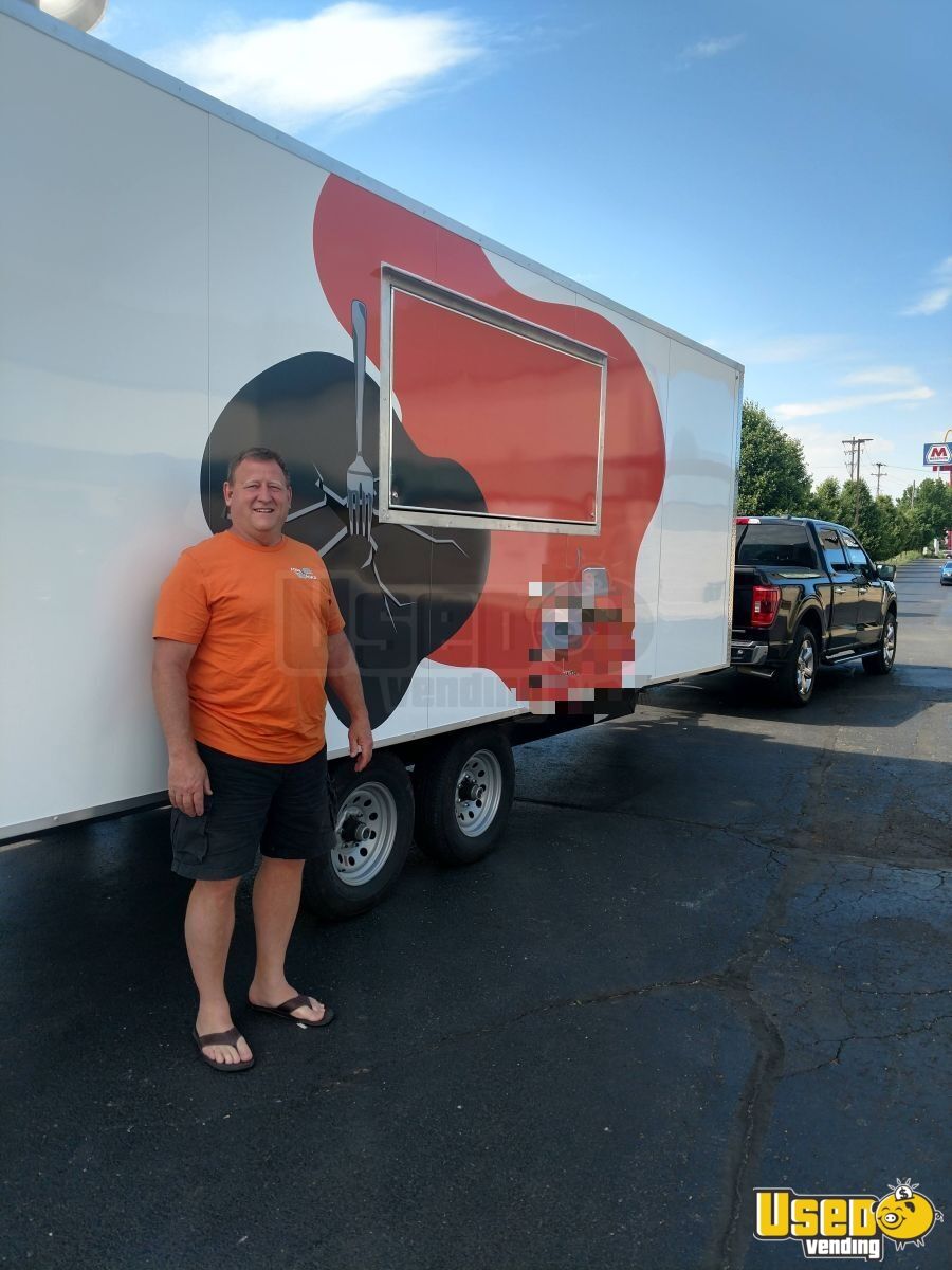 This 2022 custom kitchen food trailer offers a spacious 20' box within a 28' overall length, designed for efficiency and low maintenance. Lightly used for only 15 months, it’s sturdy, and ready to operate with its complete, professional kitchen setup.