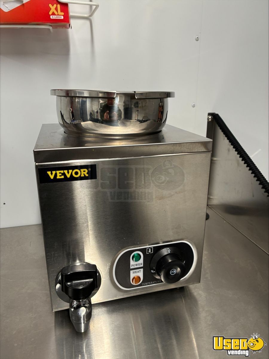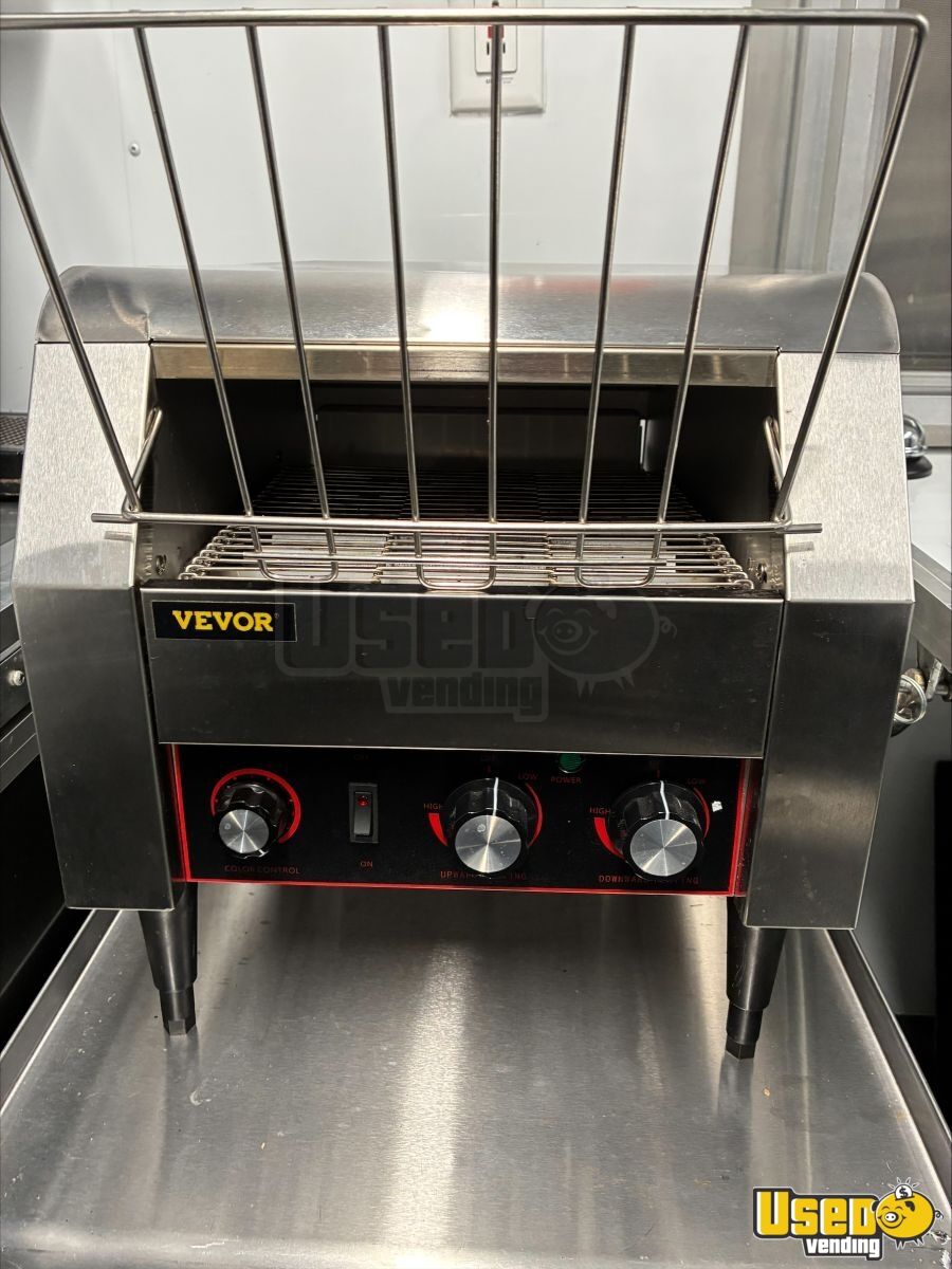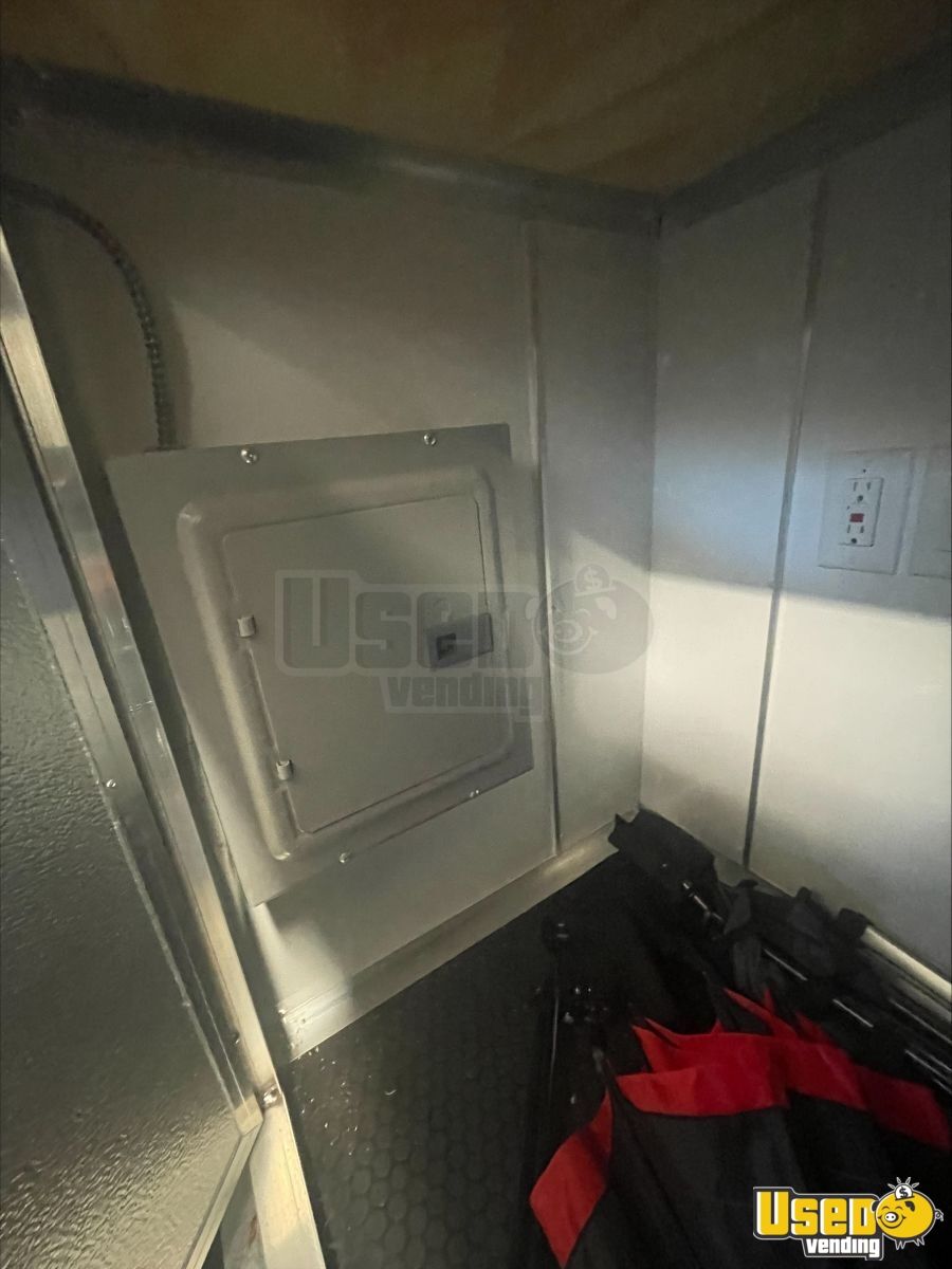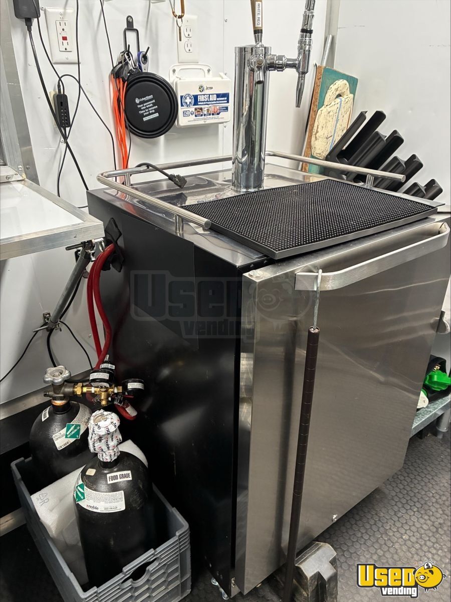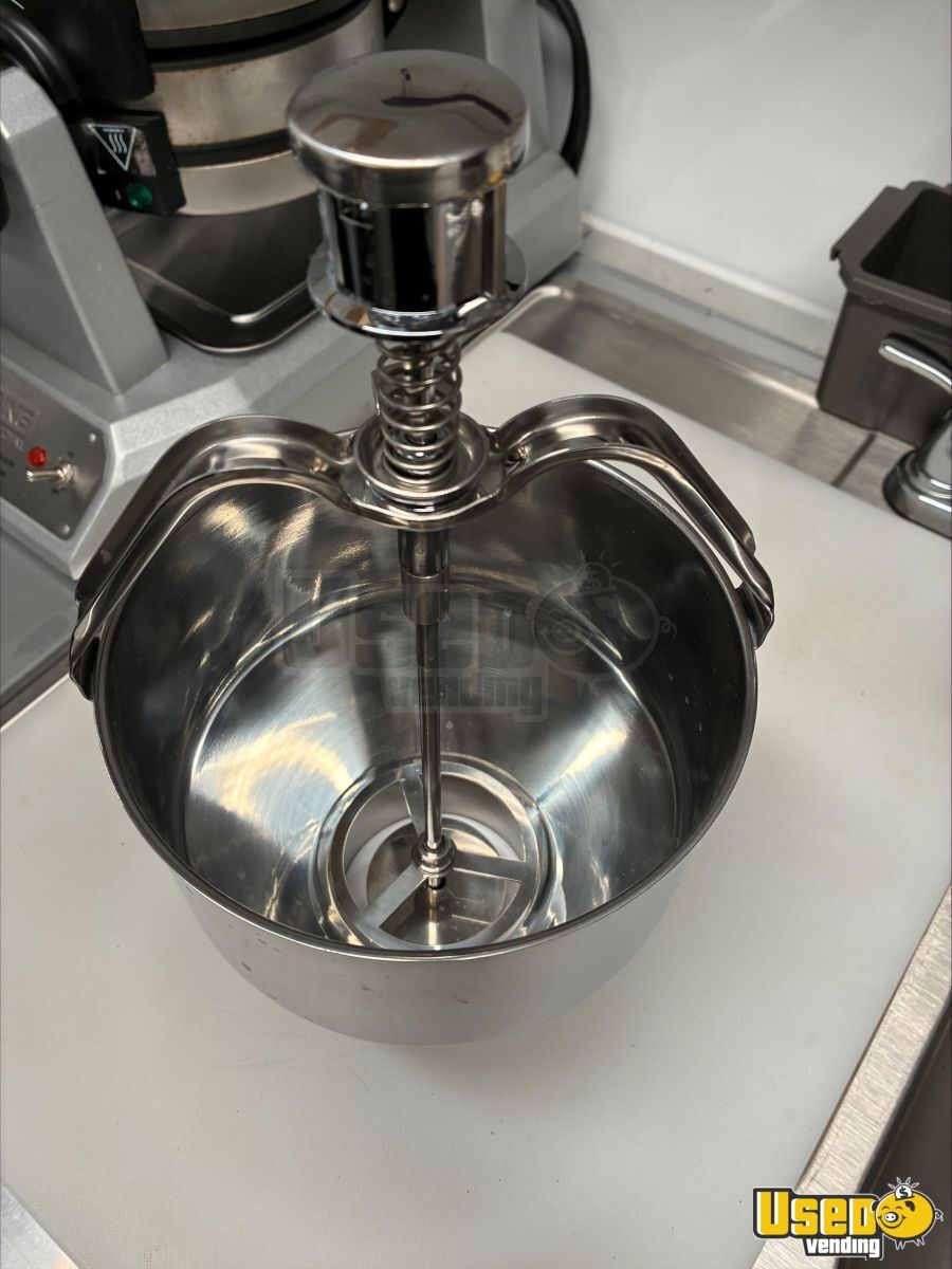 - 9000-watt GenMax dual-fuel quiet generator- 7 ft ceiling height with full insulation- 13,500 BTU roof A/C and LED lighting- True T-19GLH refrigerator and dual Bunn brewers with grinder- Double sink, 42-gallon freshwater, and 52-gallon gray water tanks- Ample cabinetry, outlets, and upgraded 100AMP breaker panel