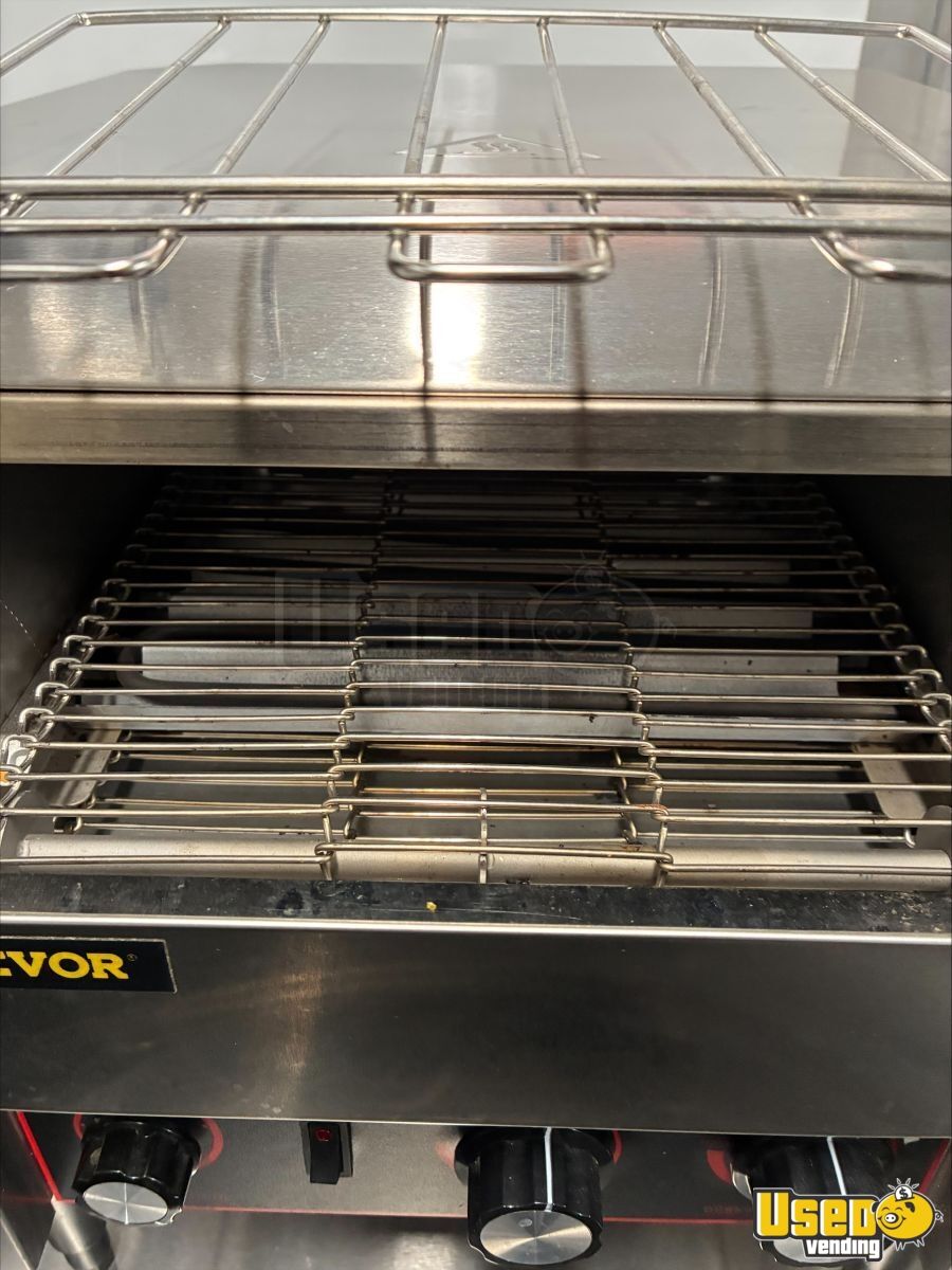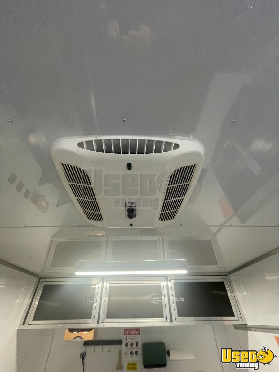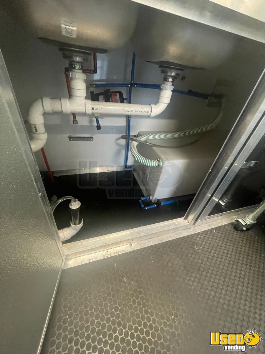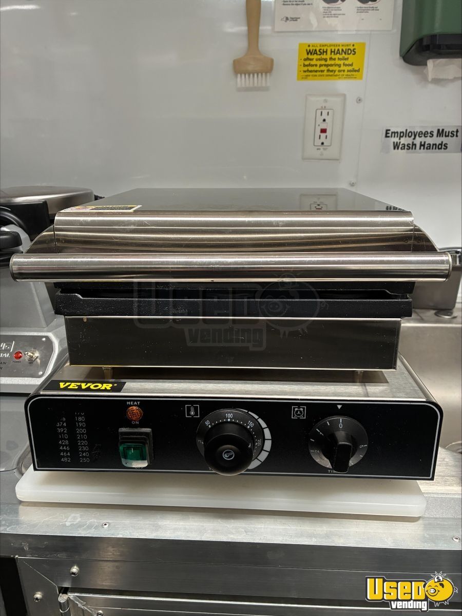 - 9000-watt GenMax dual-fuel quiet generator- 7 ft ceiling height with full insulation- 13,500 BTU roof A/C and LED lighting- True T-19GLH refrigerator and dual Bunn brewers with grinder- Double sink, 42-gallon freshwater, and 52-gallon gray water tanks- Ample cabinetry, outlets, and upgraded 100AMP breaker panel