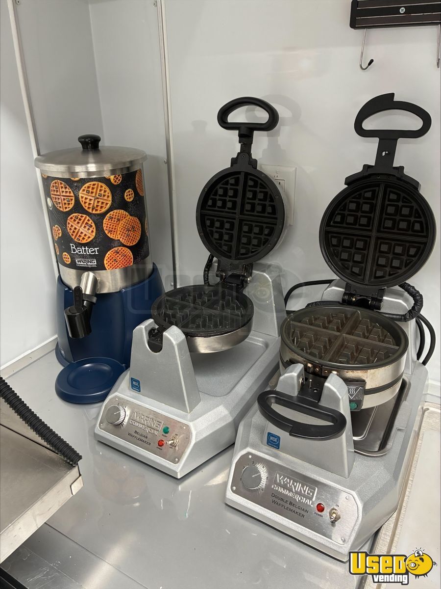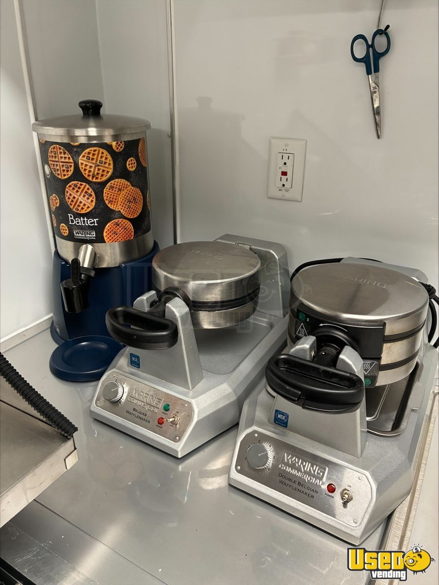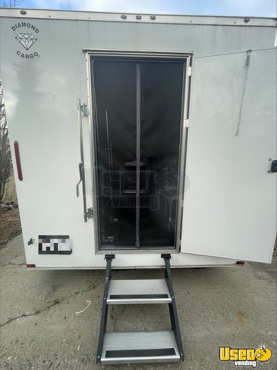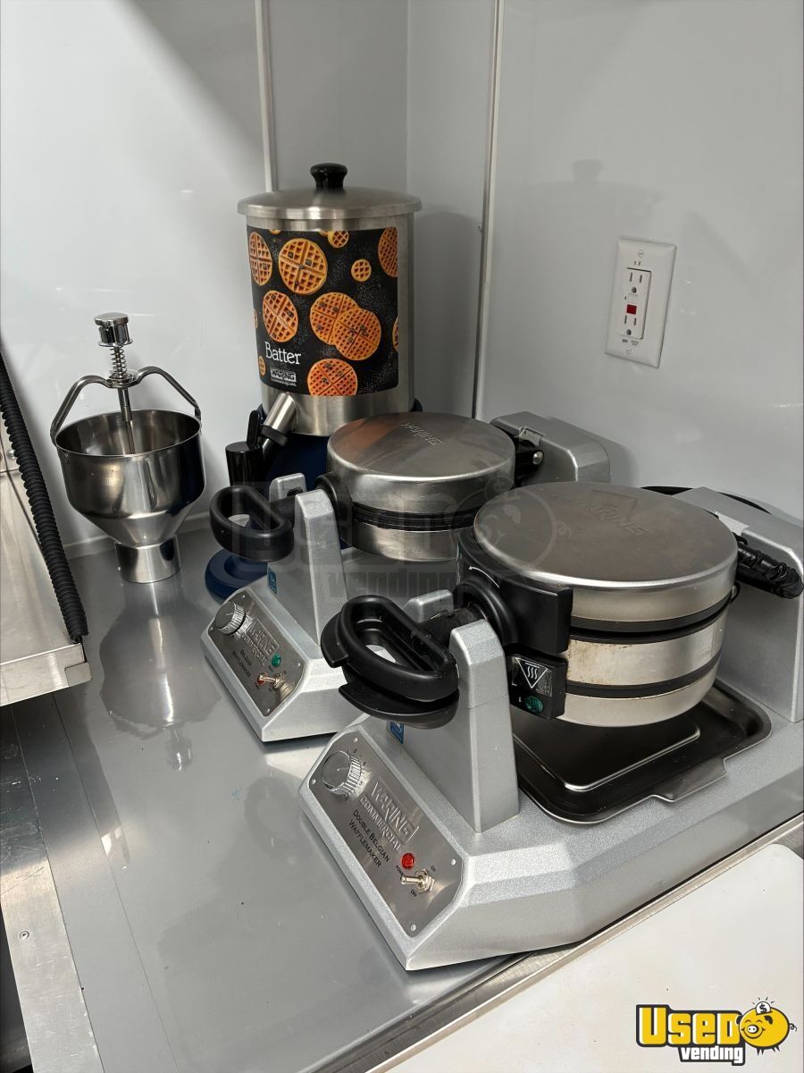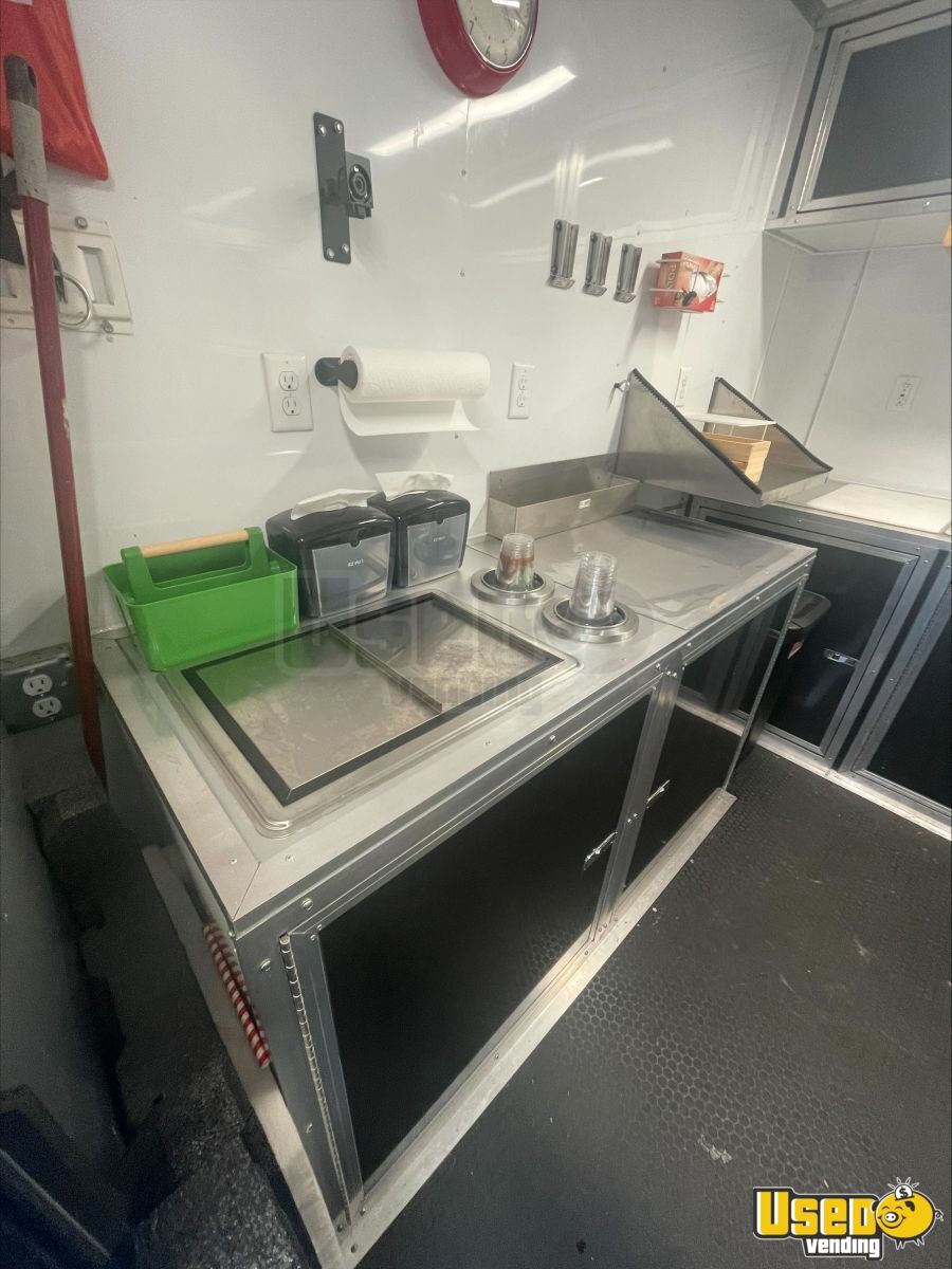This 2022 Diamond Cargo custom concession trailer is a fully equipped beverage and coffee unit designed for immediate operation. Built with a durable tandem axle and extended tongue for stability, it offers a well-laid-out interior that supports efficient workflow—ideal for coffee, waffles, or baked goods.