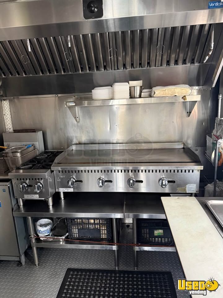 - Commercial flat top grill, fryer, and stovetop