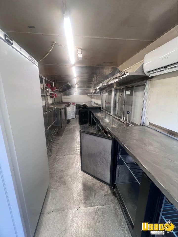 Standout features include: - Air conditioning and insulated walls - 2 concession windows and exterior customer counter - 2 freezers, 2 refrigerators, and prep station cooler - 48” flat top, 2 fryers, and 4-burner stove - Exhaust hood with pro fire suppression system - Generator, propane tanks, and shore power cord - Stainless steel walls, ample cabinetry, and diamond-plated flooring