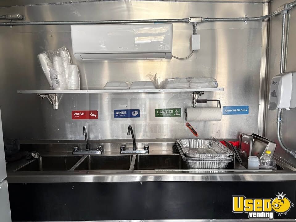 This 2023 food trailer offers a modern setup ready for any mobile kitchen venture. With a black exterior, silver interior, and essential appliances already in place, it delivers both style and functionality for on-the-go food service.
