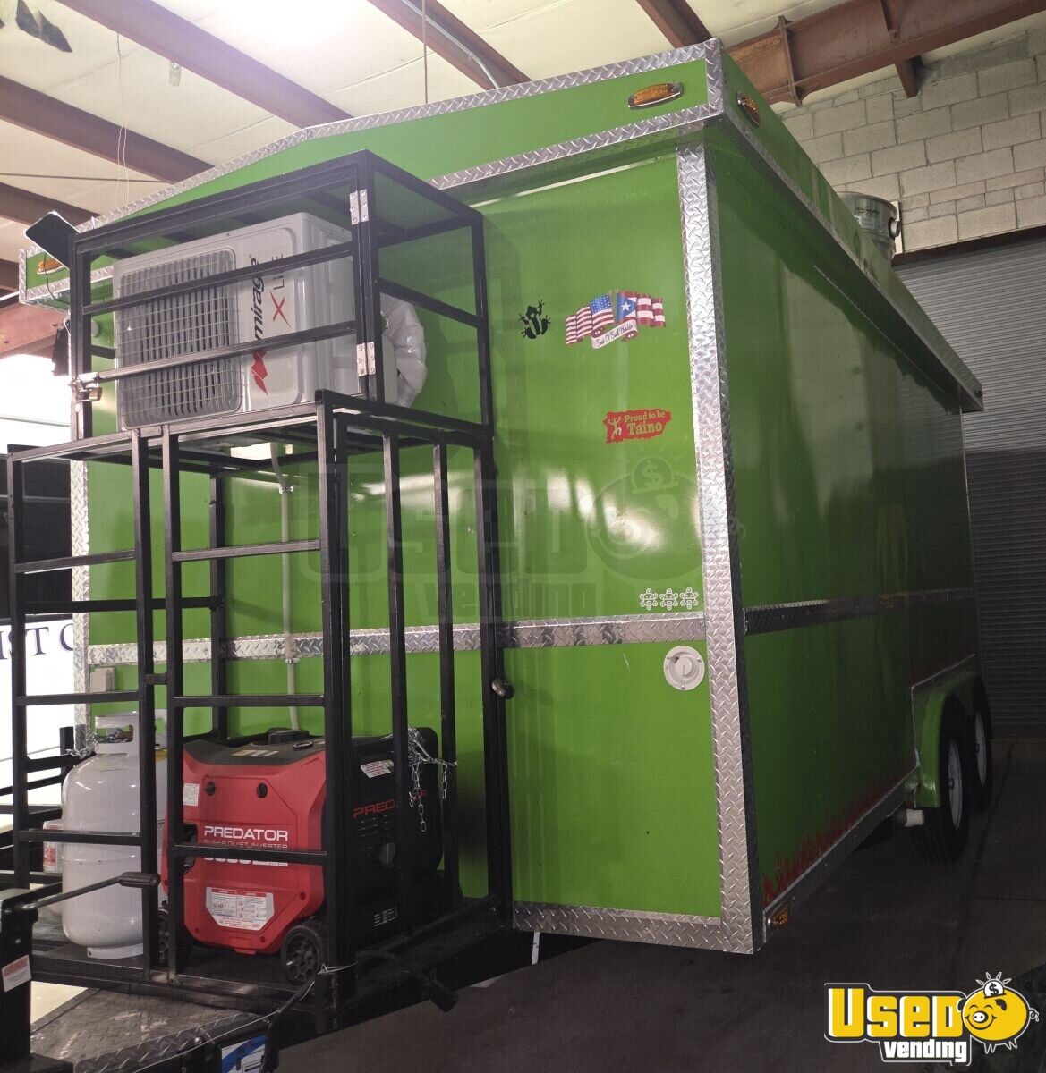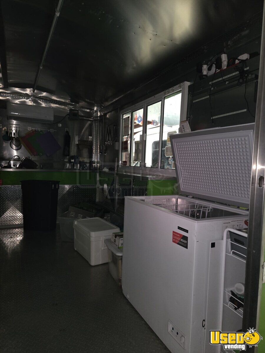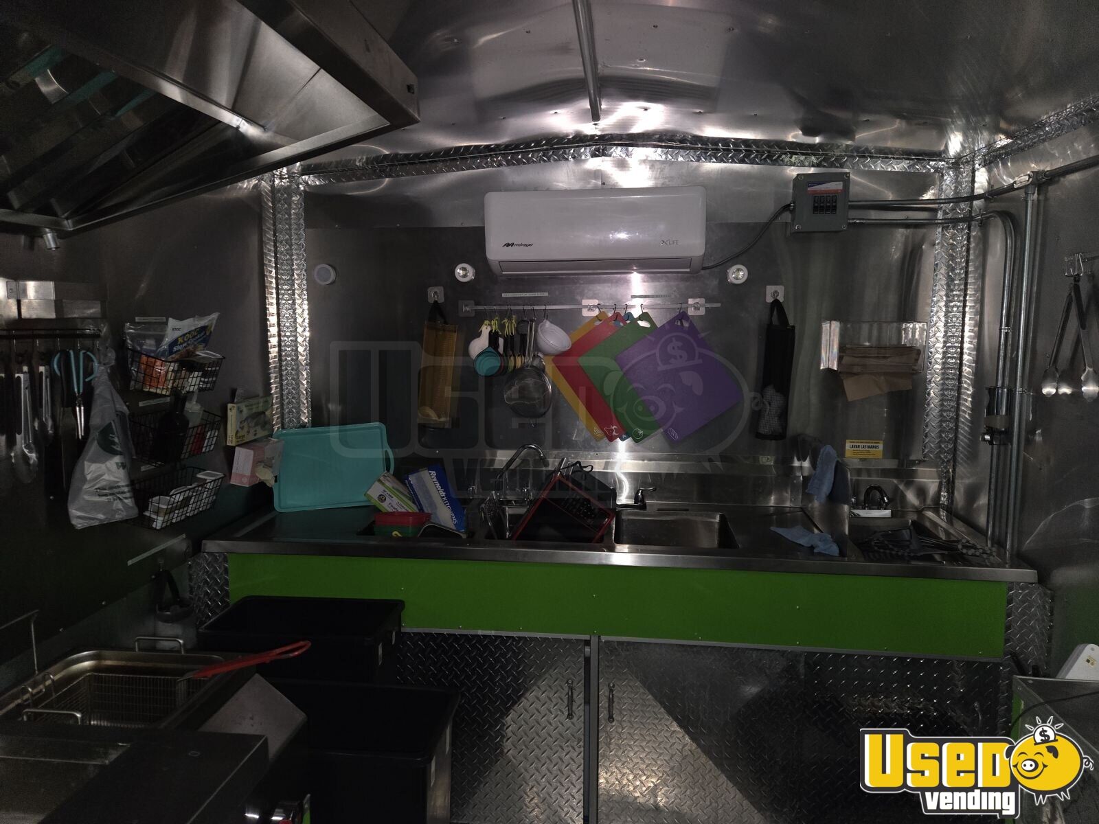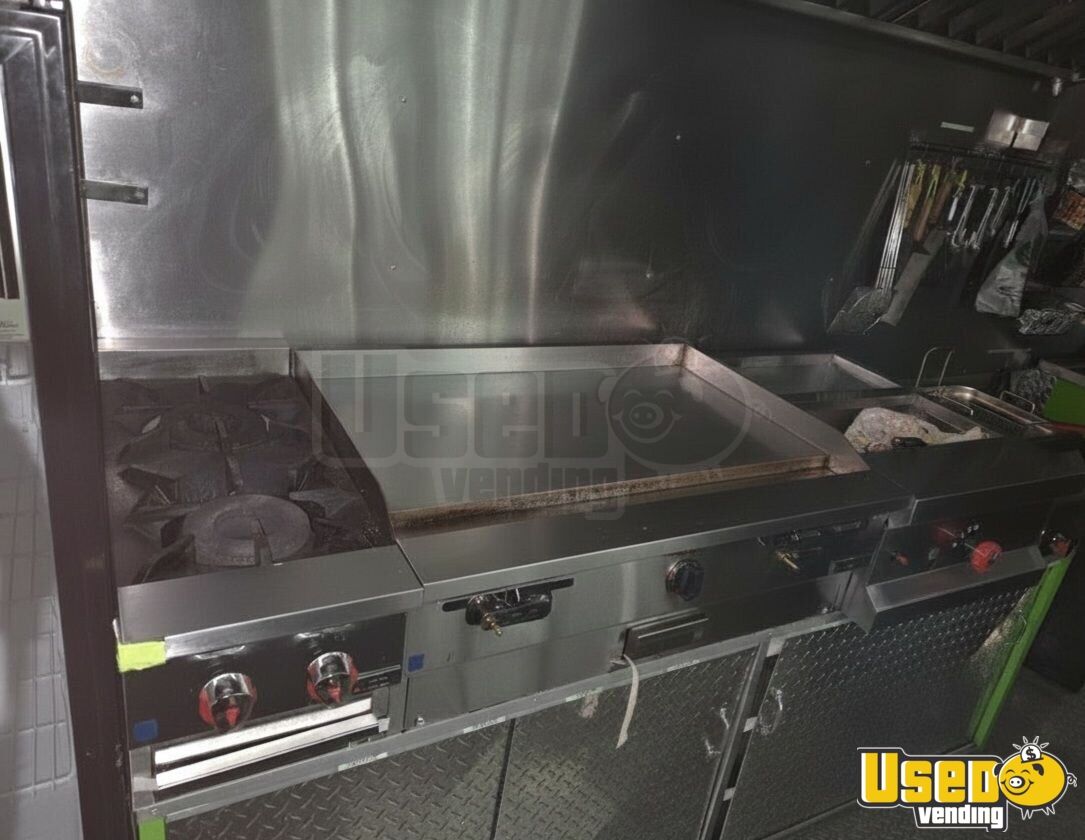 Standout features include: - Air conditioning - Deep freezer and upright glass door cooler - 2-burner stovetop, flat grill, and fryer - Triple sink, hand sink, and hot water system - Exhaust hood and fire extinguisher - Ample worktables, cabinetry, and diamond plate flooring