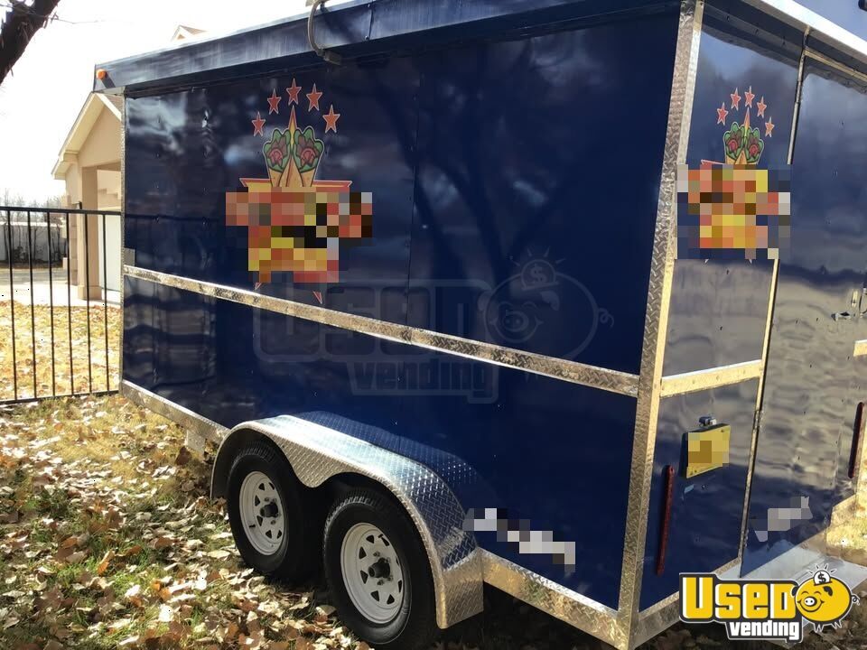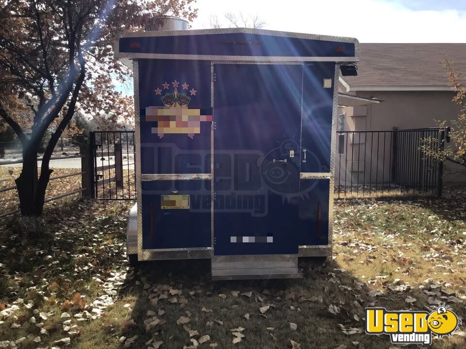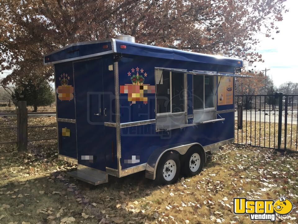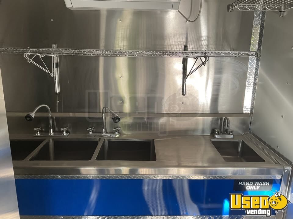 The 2023 kitchen food trailer features a blue exterior and silver interior, offering functionality and style for mobile food service. Built for reliability, this 7' x 14' trailer is ready to take your business on the road.