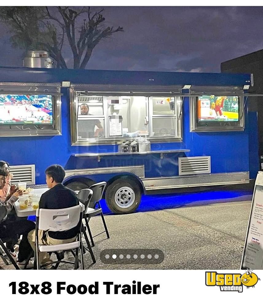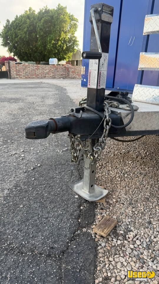 This used 2023 kitchen food trailer is fully equipped and ready for service. Built with durable aluminum and steel, it features a spacious 8' x 10' design with stainless finishes, making it ideal for a wide range of food operations. Standout attributes: - 36" flat top griddle - Three 40 lb fryers - Two-burner stove and stock pot burners - 10 ft hood with fire suppression - Large fridge, freezer, and prep station cooler - Three-compartment sink plus hand-wash sink - On-demand hot water and ample freshwater/gray tanks - 2-ton mini split A/C - LED lighting inside and out - Generator cage with pull-out shelf and 4500 generator