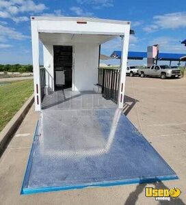 This unit has a 6ft outer deck with side gates and a fold-down exterior ramp for loading. It stands 8' high on the inside.
