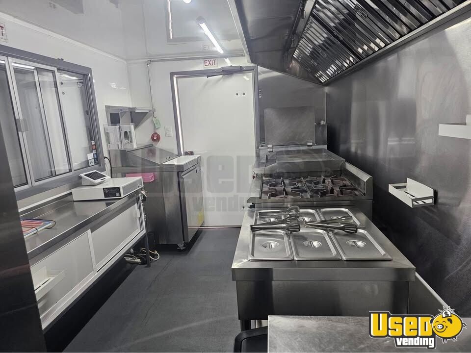 Standout features include: - Air conditioning and concession window - Two propane tanks for reliable power supply - Refrigerator, prep station cooler, and food warmer - Four-burner stovetop, flat grill, and fryer - Exhaust hood, sinks, and POS system