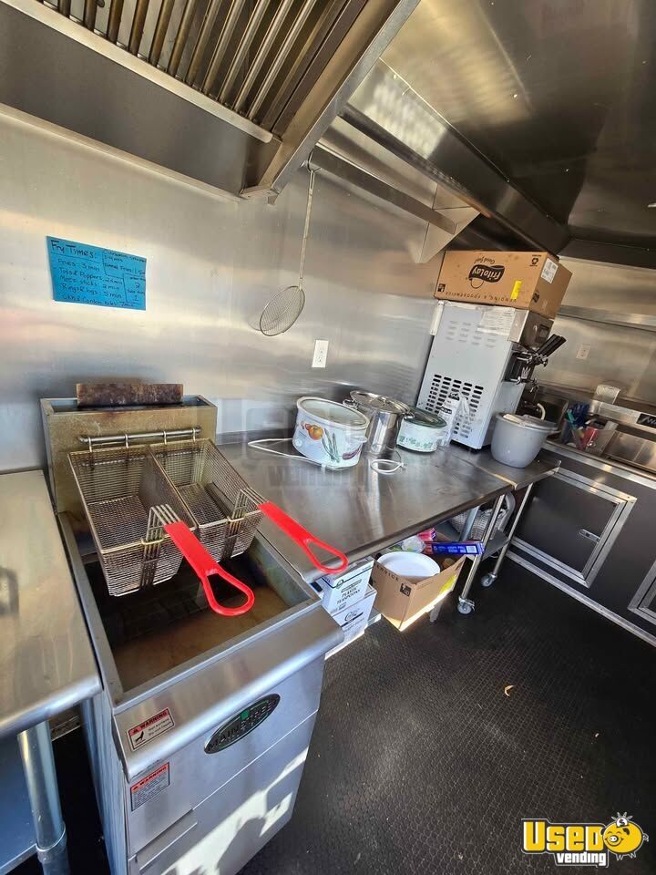 This dual axle kitchen trailer is in good condition and ready for immediate use. It features reliable 50-amp electrical service, sturdy construction, and a interior layout designed for efficient food preparation and service. Interested? Call us now!