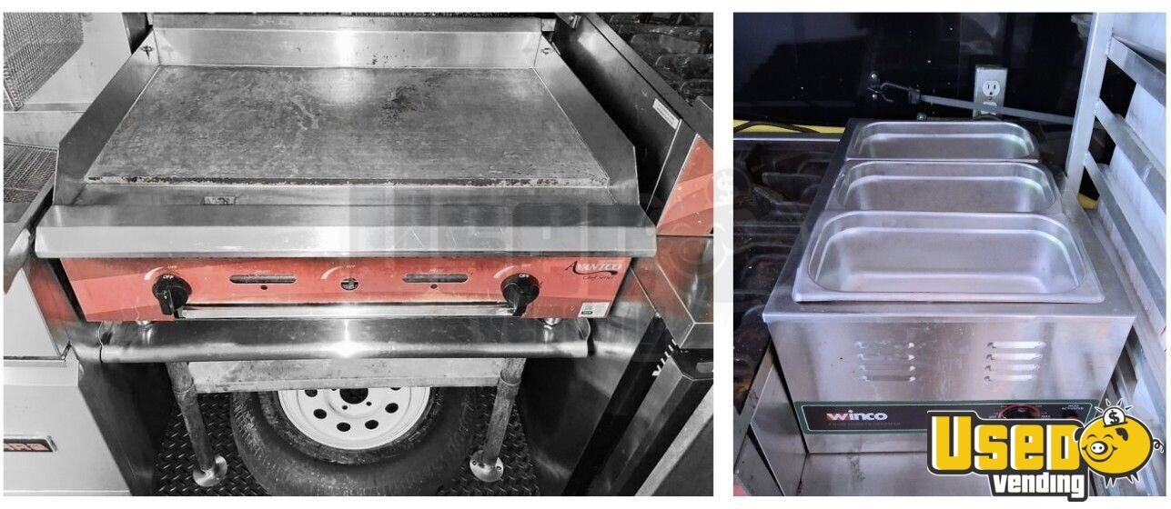 - Two 40 lb fryers, large flat-top grill, 2-burner stove, and food warmer