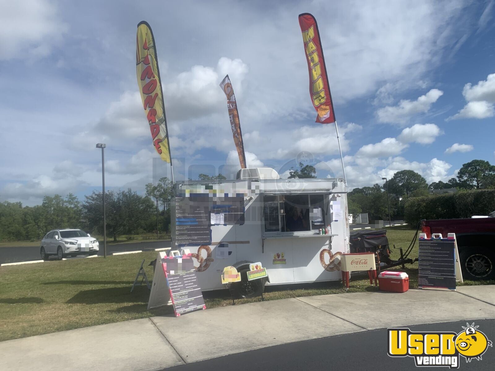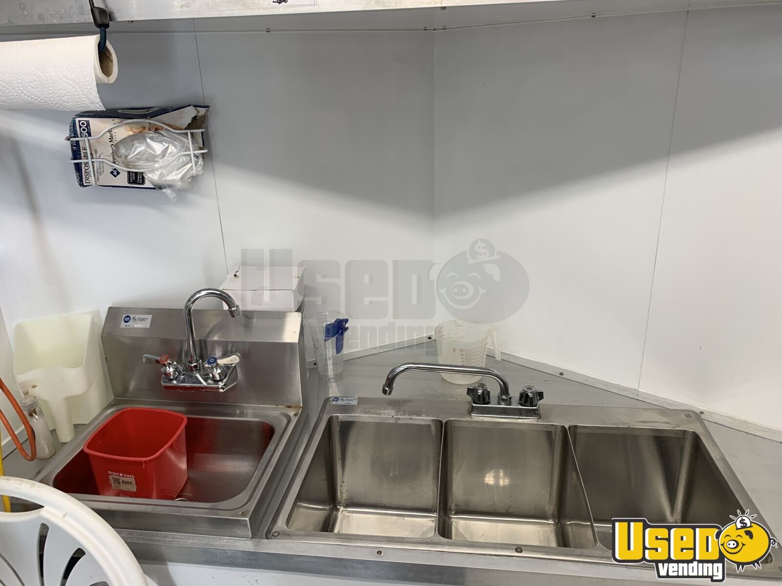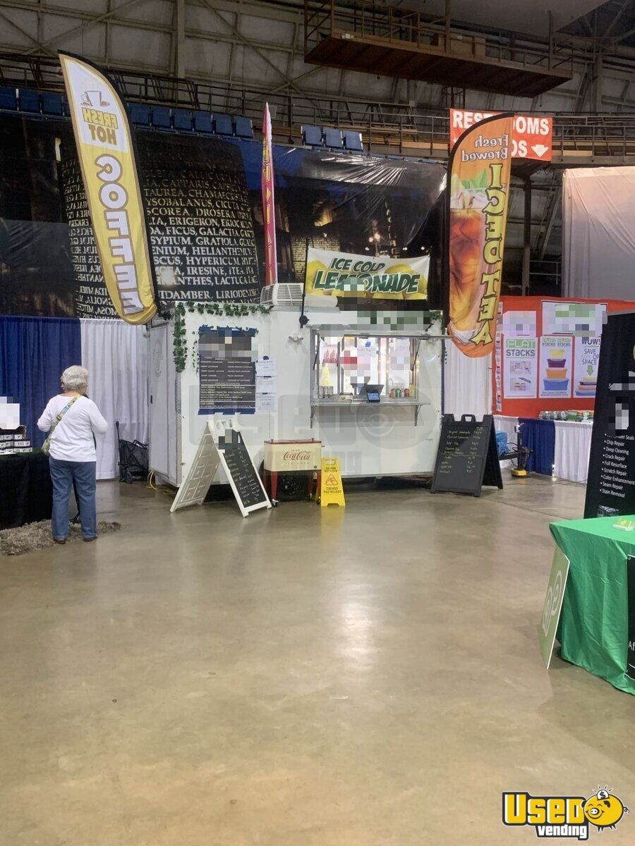 This 2023 Empire Cargo 6x12 beverage trailer offers a clean, finished interior and efficient workspace ideal for serving lemonade, tea, and pretzels. With a bright white exterior and V-nose design, it provides both style and functionality for mobile beverage operations.