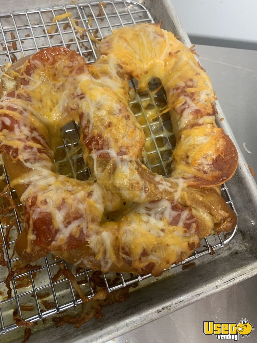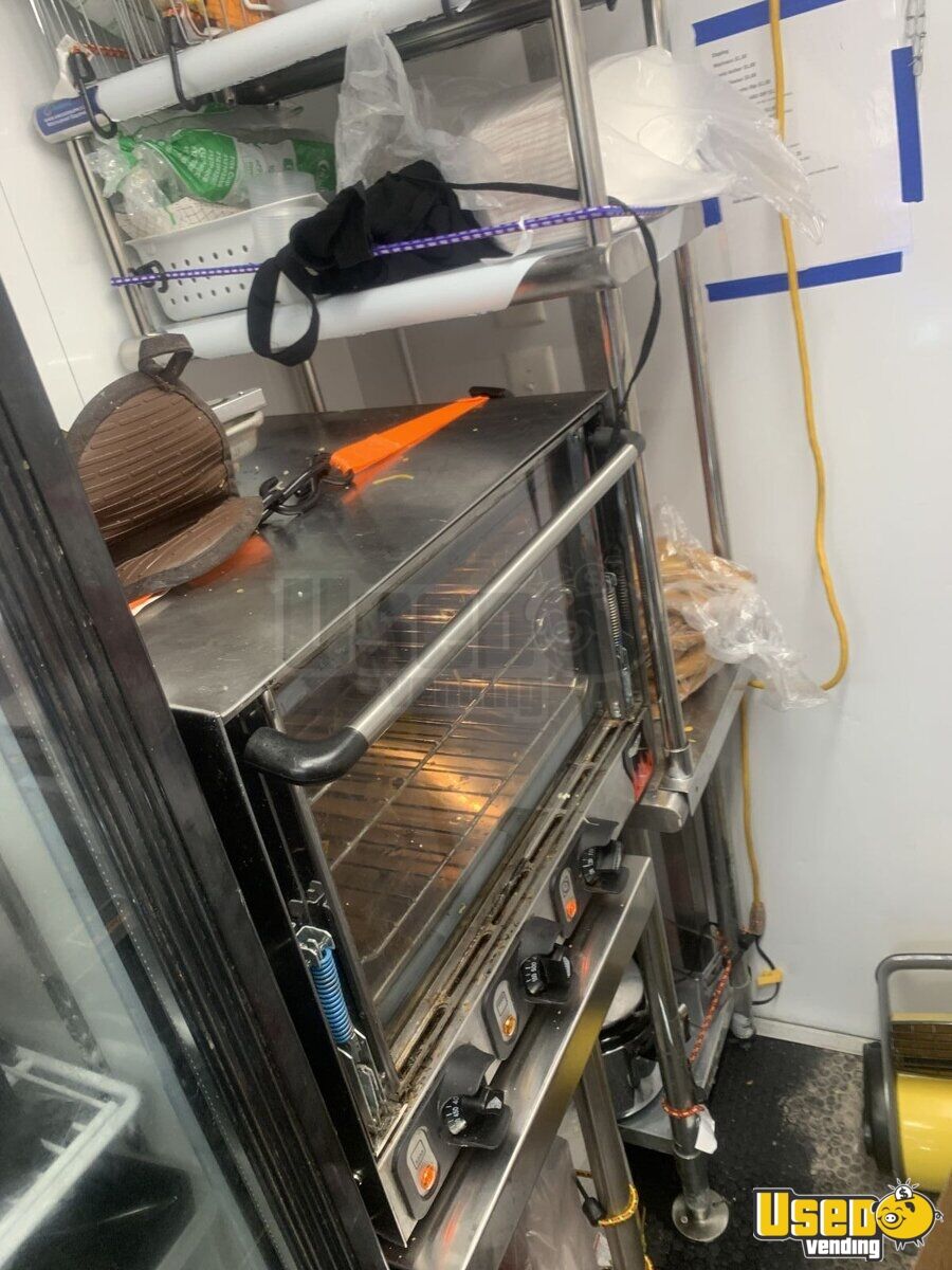Standout features include: - 13,500 BTU air conditioning - Electric package with outlets and lighting - Triple sink and hand-washing station with fresh and gray water tanks - Vollrath convection oven, coffee machine, and heated display case - DuroMax 16,000-watt dual-fuel generator - Interior with white metal walls and 1 pc rubber floor, and AC