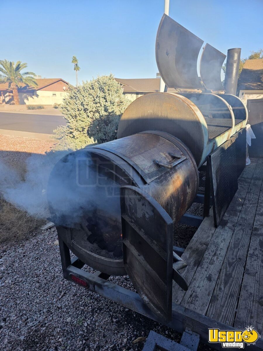 This 2024 used barbecue food trailer features a sturdy steel build and a custom 500-gallon offset smoker. Designed for efficient BBQ operations, it includes all essential plumbing and cooking systems to start serving right away.