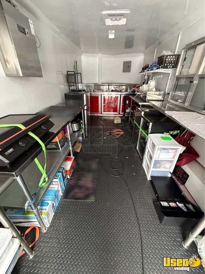 This food trailer offers a modern, efficient workspace ready for service. Outfitted with essential kitchen appliances and safety systems, it’s designed to support a variety of food operations while maintaining professional compliance. Call today to learn more!