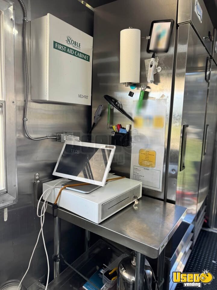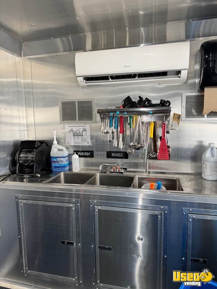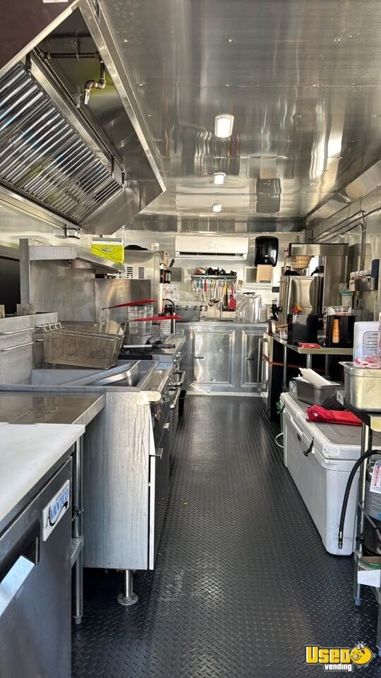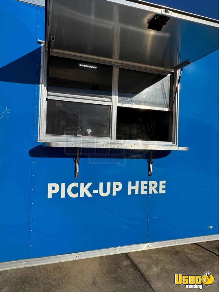 This food trailer offers a clean, fully equipped setup ready for immediate use. It features a bright blue exterior and a functional, well-maintained interior designed for efficient food service operation. Need to know more? Call us now!