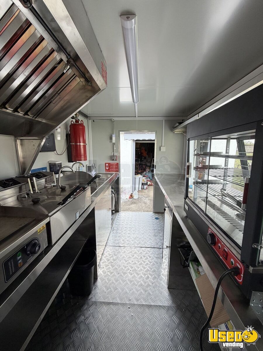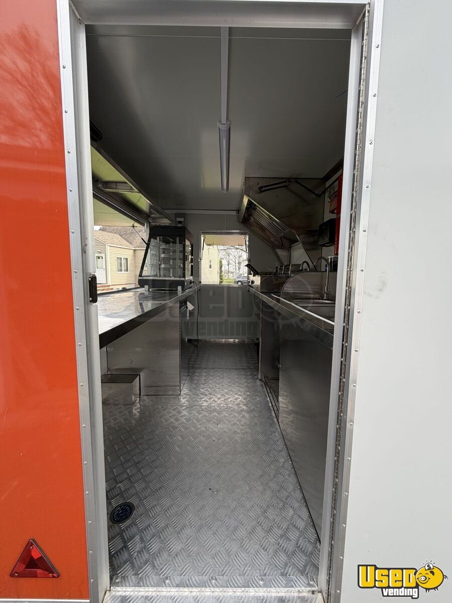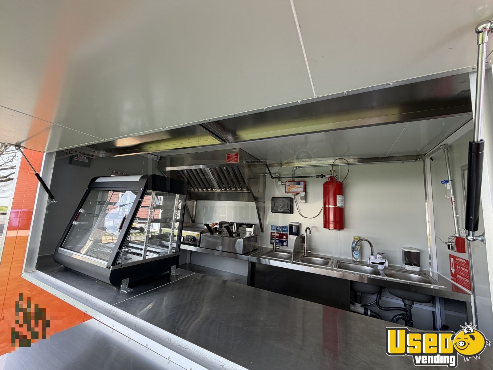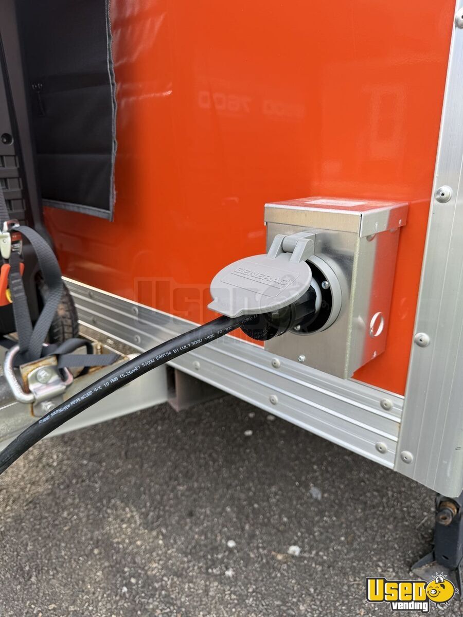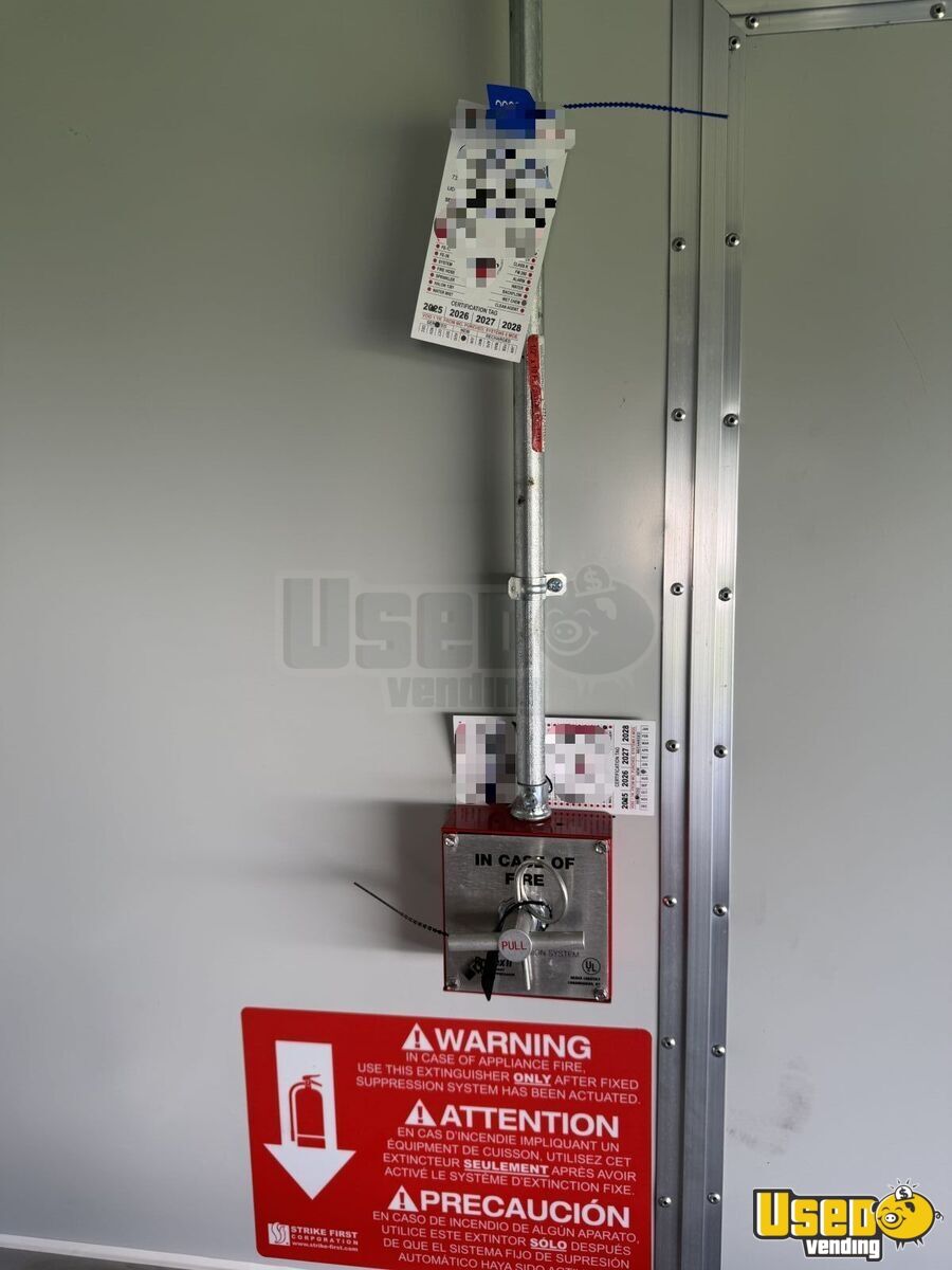 Standout features include: • Commercial exhaust hood with ventilation system • Predator 9500W super quiet inverter generator • Dual electric fryers and electric flat-top grill • Electric display food warmer and dual-mode refrigerator • Triple sink with hand-washing station and fresh/gray water tanks • Stainless steel interior with insulated walls and diamond-plated flooring • Certified fire suppression system and ample lighting outlets