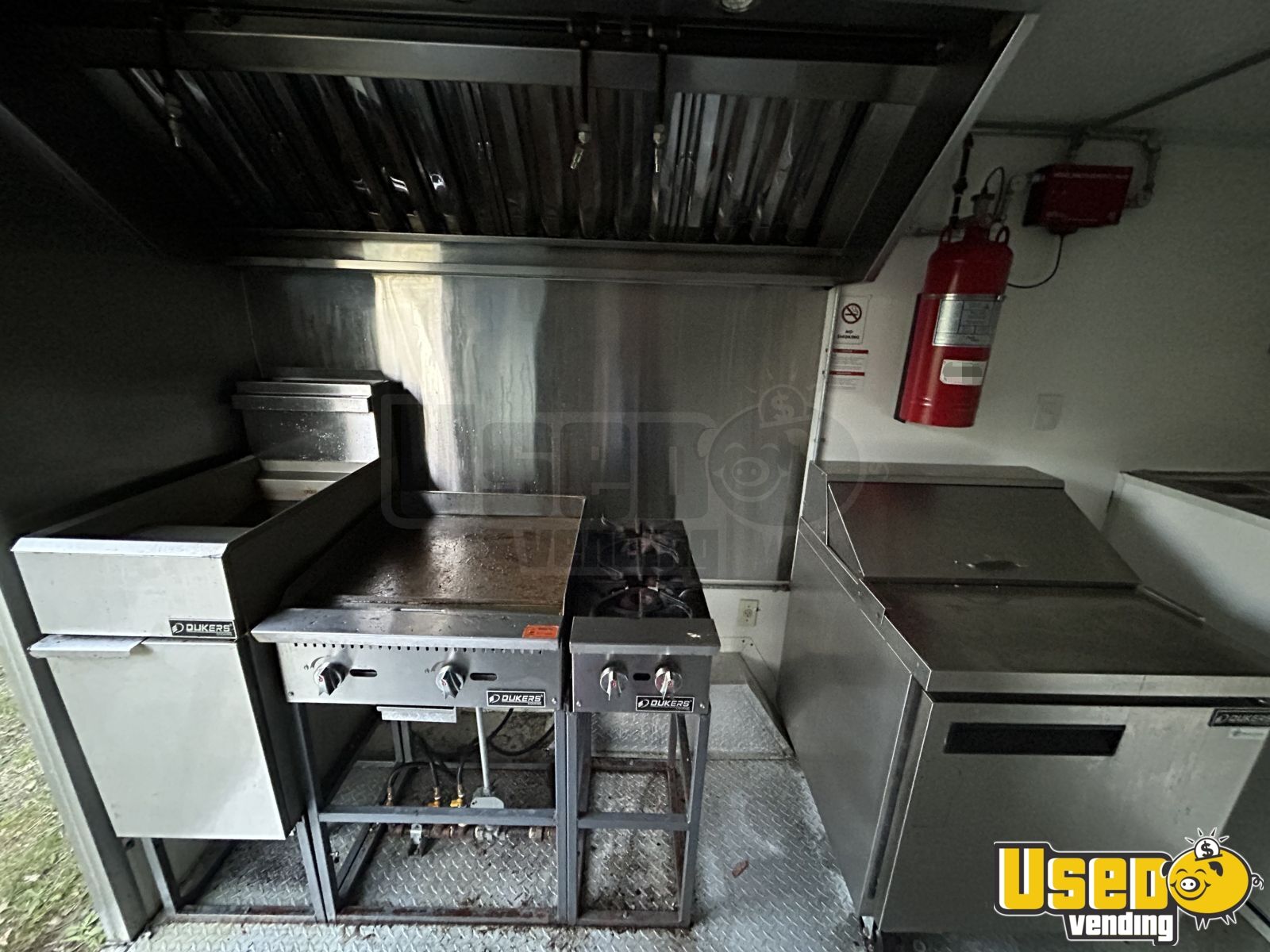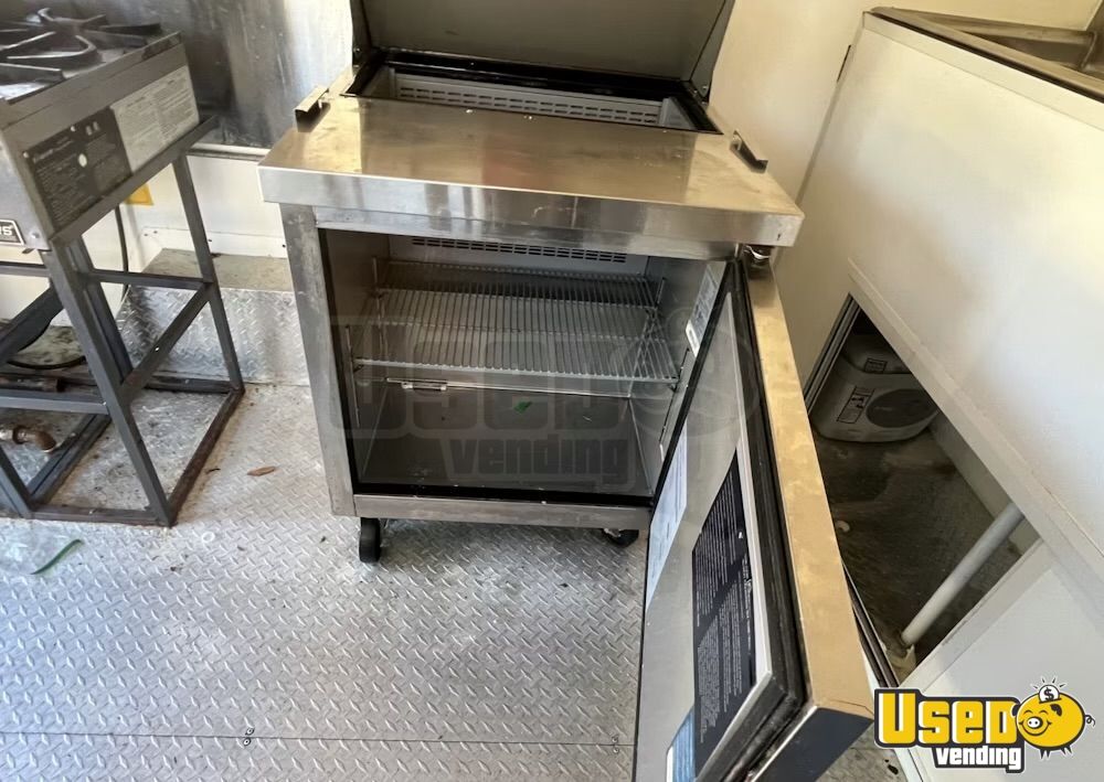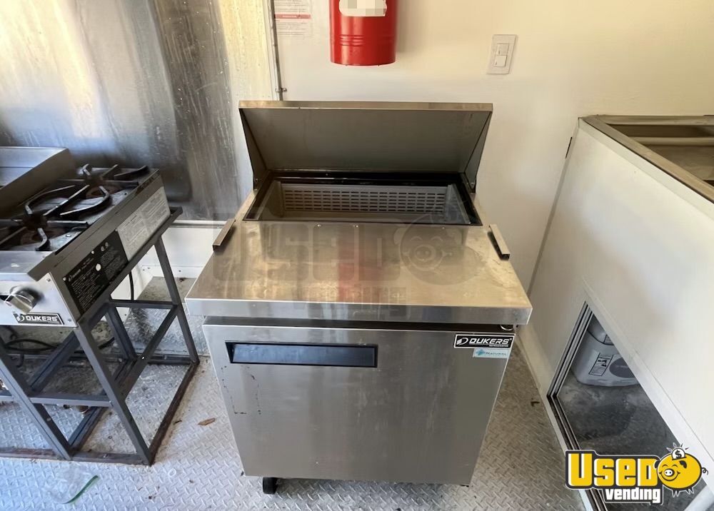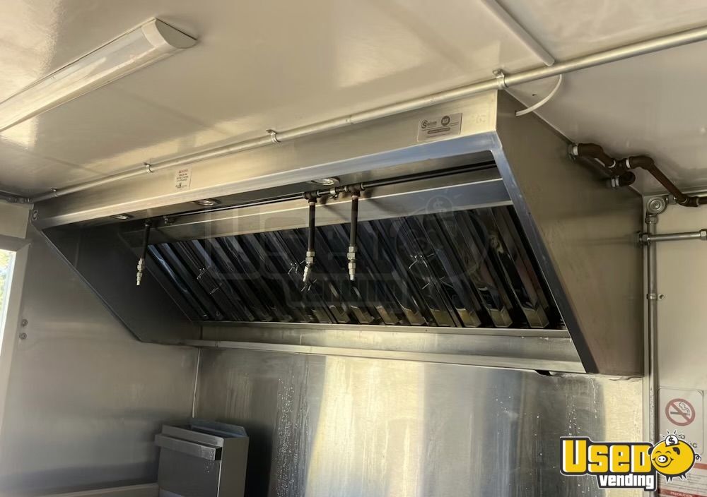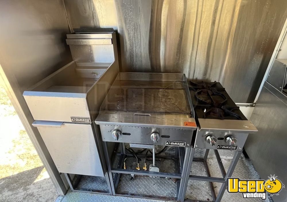 Standout features include: - Air conditioning system (12,000 BTU) - 6’ exhaust hood with ProEx fire suppression - Dukers griddle, fryer, and refrigeration units - Dual sinks plus hand-washing station - On-demand water heater - Diamond-plated aluminum flooring - Ample storage cabinetry and interior outlets