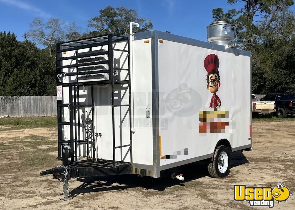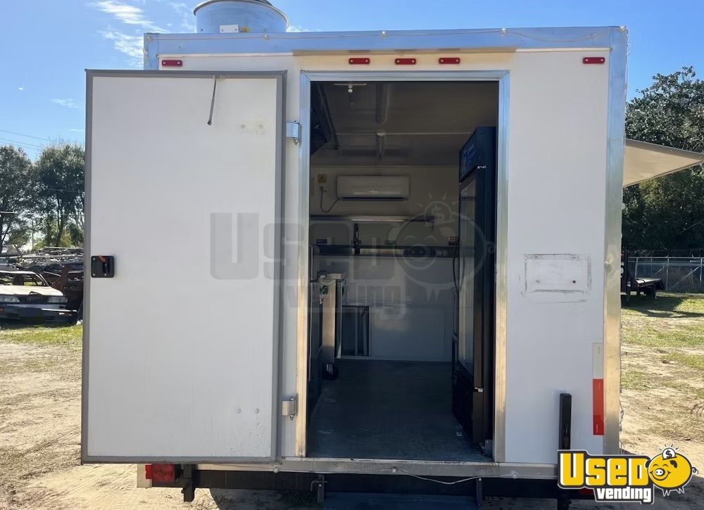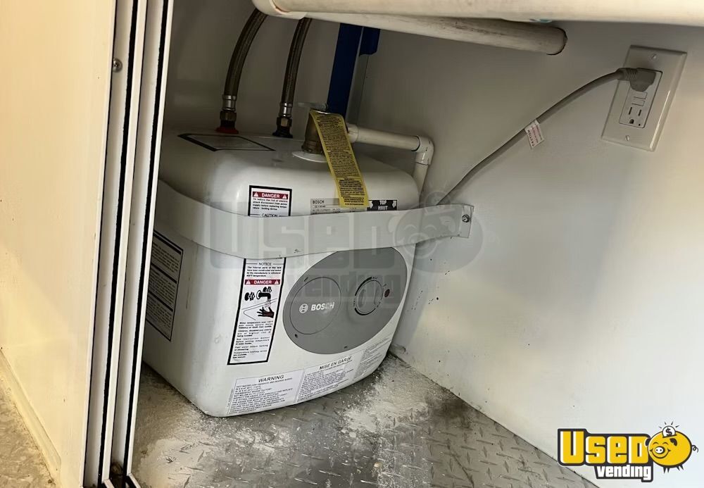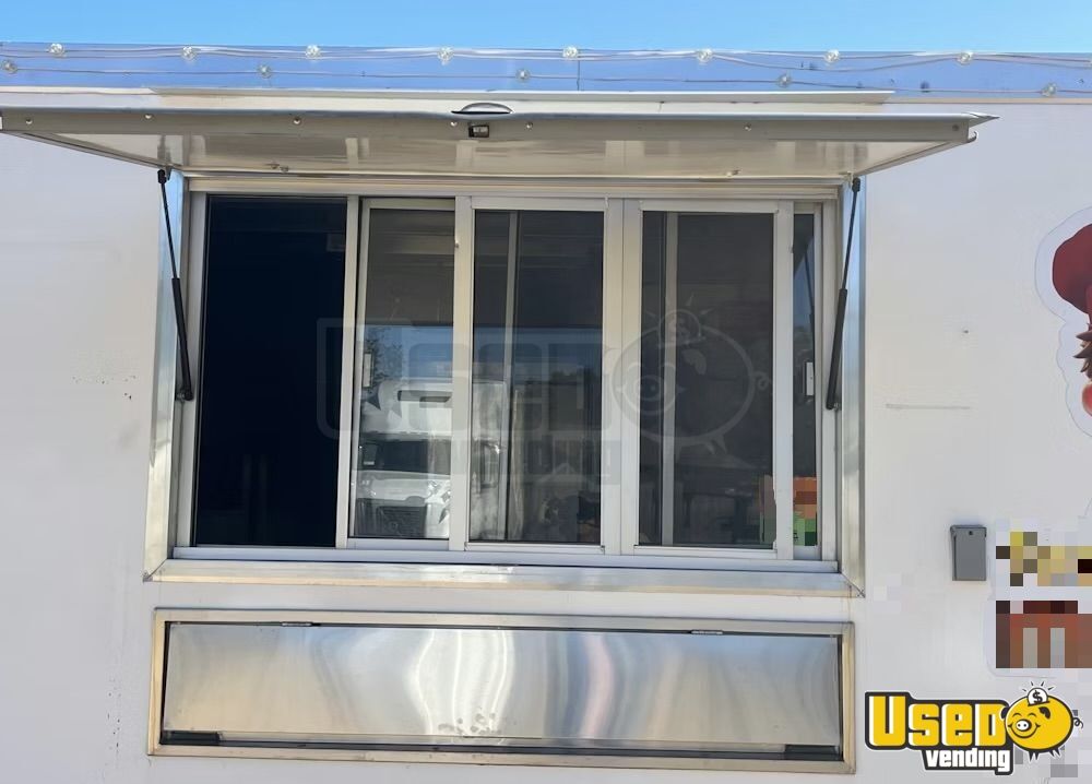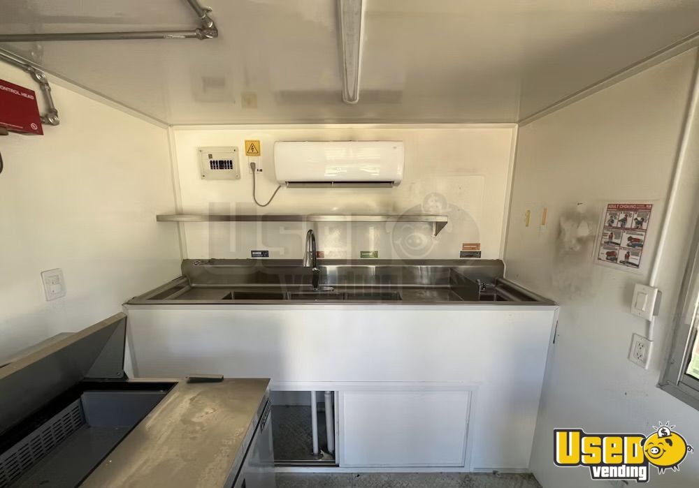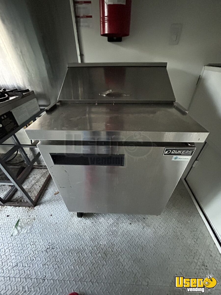 Standout features include: - Air conditioning system (12,000 BTU) - 6’ exhaust hood with ProEx fire suppression - Dukers griddle, fryer, and refrigeration units - Dual sinks plus hand-washing station - On-demand water heater - Diamond-plated aluminum flooring - Ample storage cabinetry and interior outlets