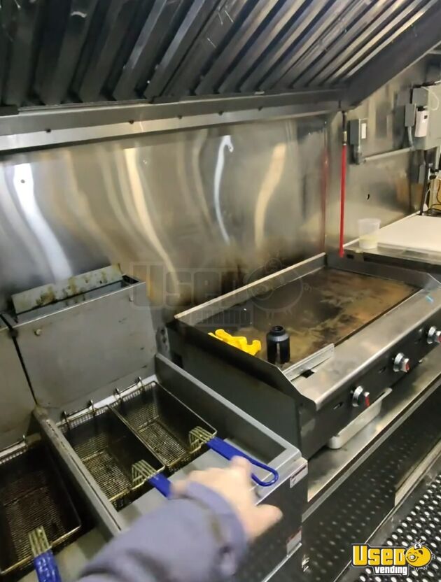 Standout features include: - Dual double-basket fryers and stovetop griddle - 3-compartment and handwash sinks - Overhead AC/heating unit - Mounted generator and propane setup - Chest refrigerator and freezer - Stainless steel walls and diamond-plated flooring - Sound system and POS system installed