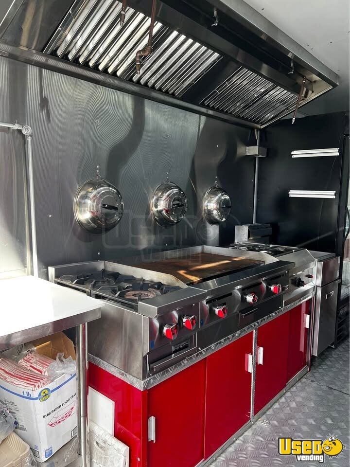 Standout features include: - Air conditioning and insulated walls - Concession window and exterior counter - Stainless steel interior with diamond-plated flooring - Generator, propane tanks, and shore power cord - Refrigerator, prep cooler, stovetop, grill, fryer, and steam table - Exhaust hood with fire suppression system - LED lighting and hand-washing sink