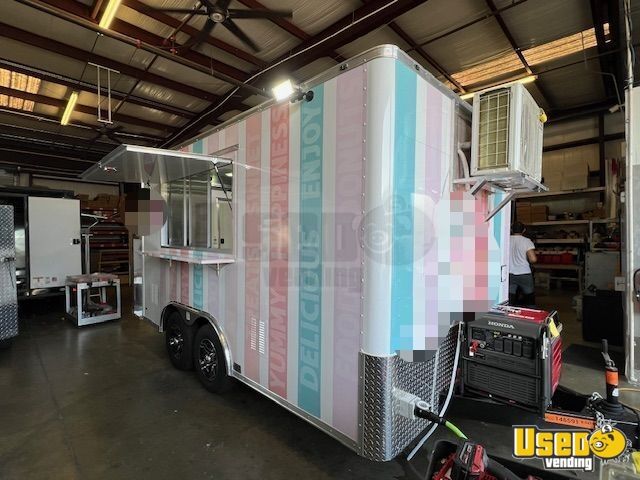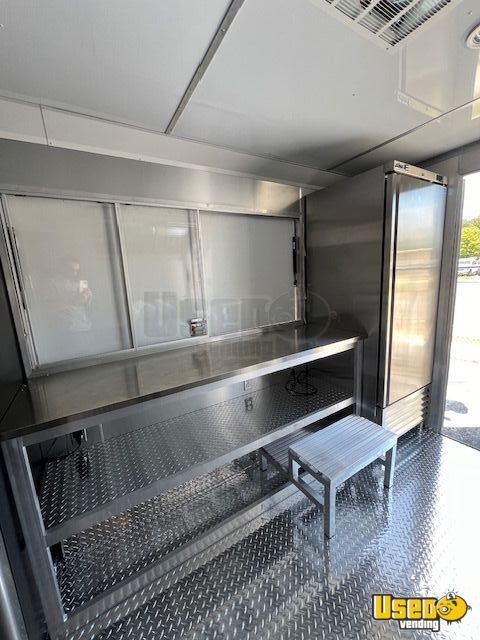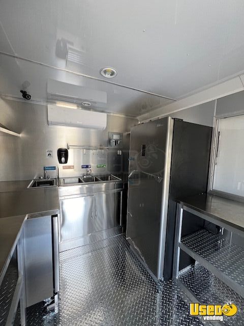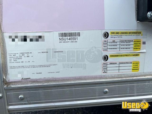 This custom-built 14' enclosed kitchen trailer, manufactured in 2024, offers a setup ideal for professional food service. Built with durable aluminum and equipped with essential commercial-grade appliances, it delivers both reliability and convenience for various mobile food concepts.