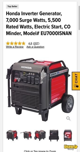 Standout features include: - Coleman 15,000 BTU A/C unit - Four surveillance cameras (two interior, two exterior) - Two refrigerators and one convertible freezer - Dual fryers, stainless steel worktable, and 4' exhaust hood - LED lighting, ProTex II fire suppression, and 5500W Honda generator