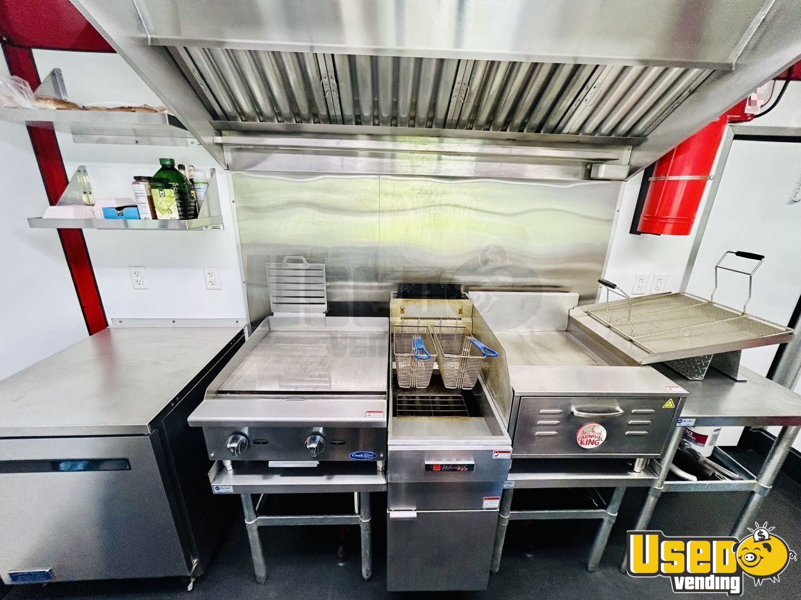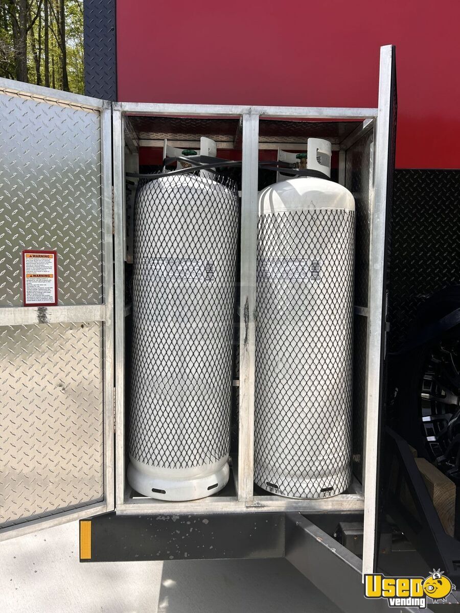This 8.5’ x 16’ 2024 Red Mobile Food Kitchen is a custom-built steel trailer featuring a clean title and a state-approved fire suppression system. Designed to meet food safety codes nationwide, it’s ready for immediate service with fully functional electrical, plumbing, and gas systems.