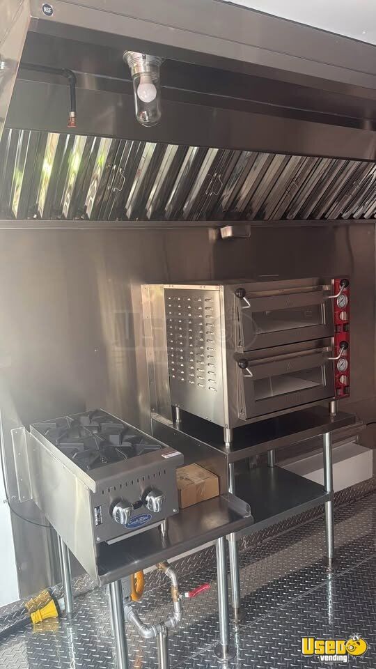 This pizza trailer offers a well equipped, health department approved kitchen ready for immediate service. Used for only four months, it includes a super-quiet 9500W generator and all essential systems in good working order. Interested? Call us now!