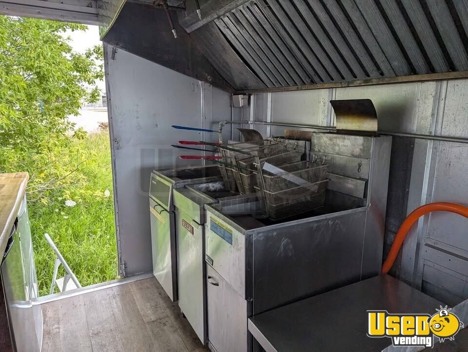 Standout features include: - Concession window - Refrigerator - Fryer and food warmer - Exhaust hood with pro fire suppression system - Hand-washing sink and breaker panel - Electric potato peeler, fry chopper, and new propane hoses