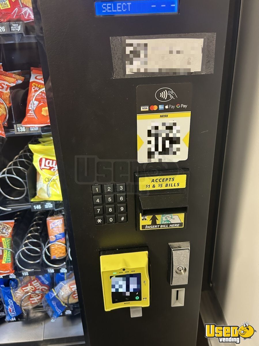 This is a Crane National Vendors 4-Wide snack vending machine manufactured by Crane National. Only two years old, in great condition with no damage or mechanical issues. It comes complete with a Nayax card reader for cashless payments ready to start earning immediately.