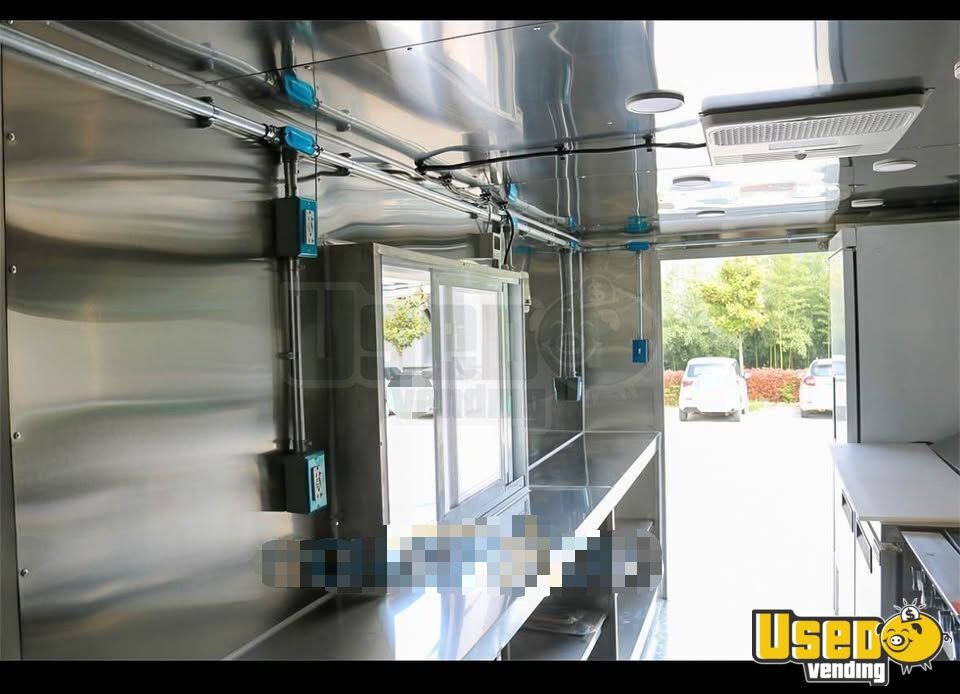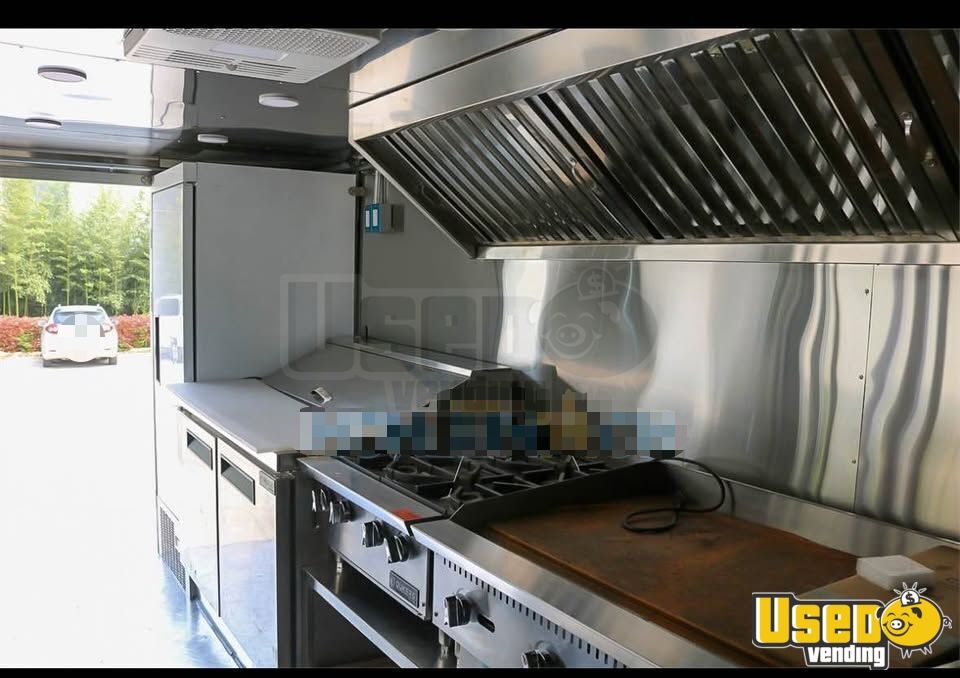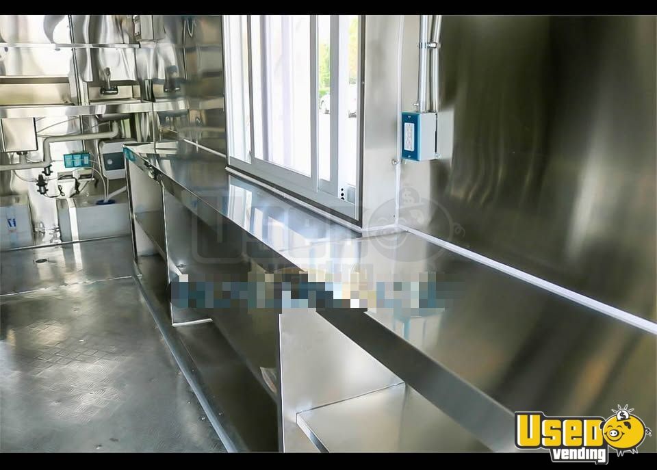 Standout features include: - Concession window - Refrigerator - Prep station cooler - Stovetop and flat grill - Exhaust hood - Interior lighting and electrical outlets - Hand-washing and triple sinks