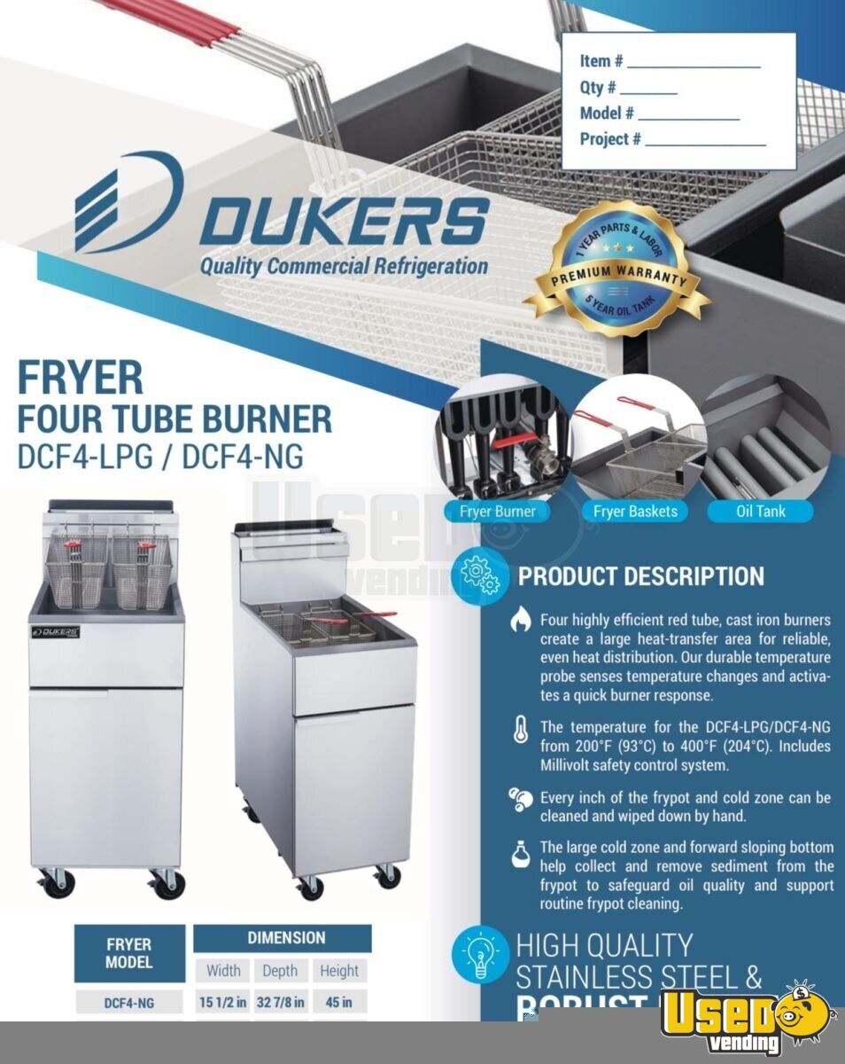 - Fryer(s): Dukers Gas Fryer 50 lbs DCF-4-LPG (120k BTU)