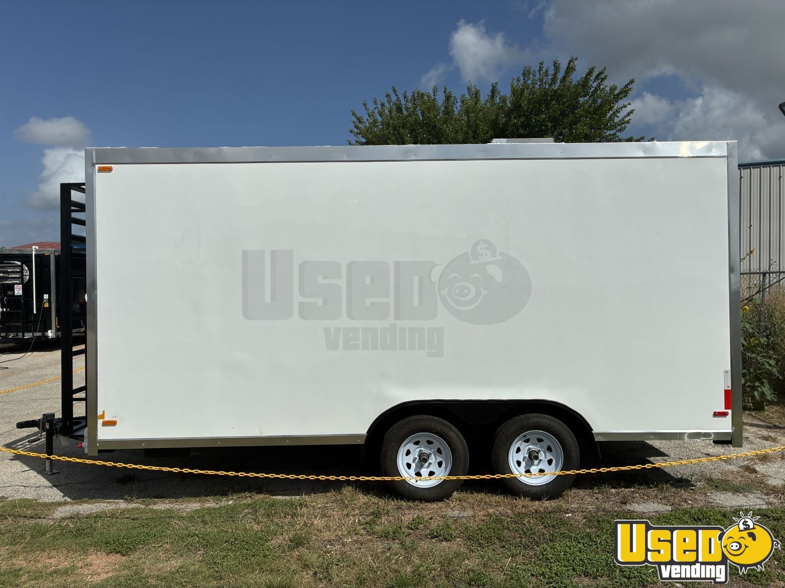 Standout features include: • Air conditioning (heat/cool) • Fold-down customer counter • Propane setup with two tanks • 9-ft exhaust hood with fire suppression • microwave • Refrigerator (Avantco) • Hot water heater and dual sinks • Fresh and gray water tanks • Interior and exterior lighting