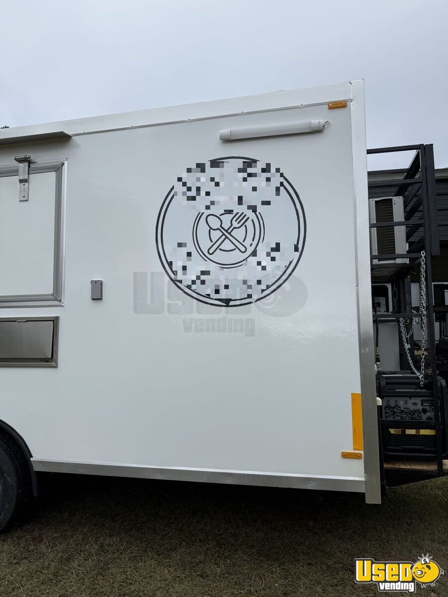 This 8' x 16' kitchen food trailer is a 2025 unit, used for only four weeks, and is still in good working order. Built with durable fiberglass and featuring a recently installed kitchen, it offers a spotless, fully equipped layout ready for immediate operation.