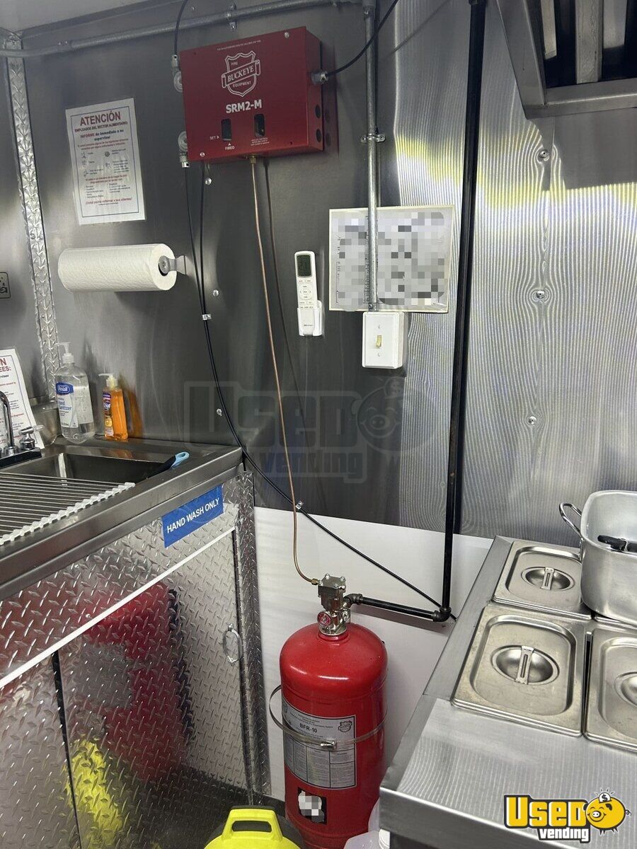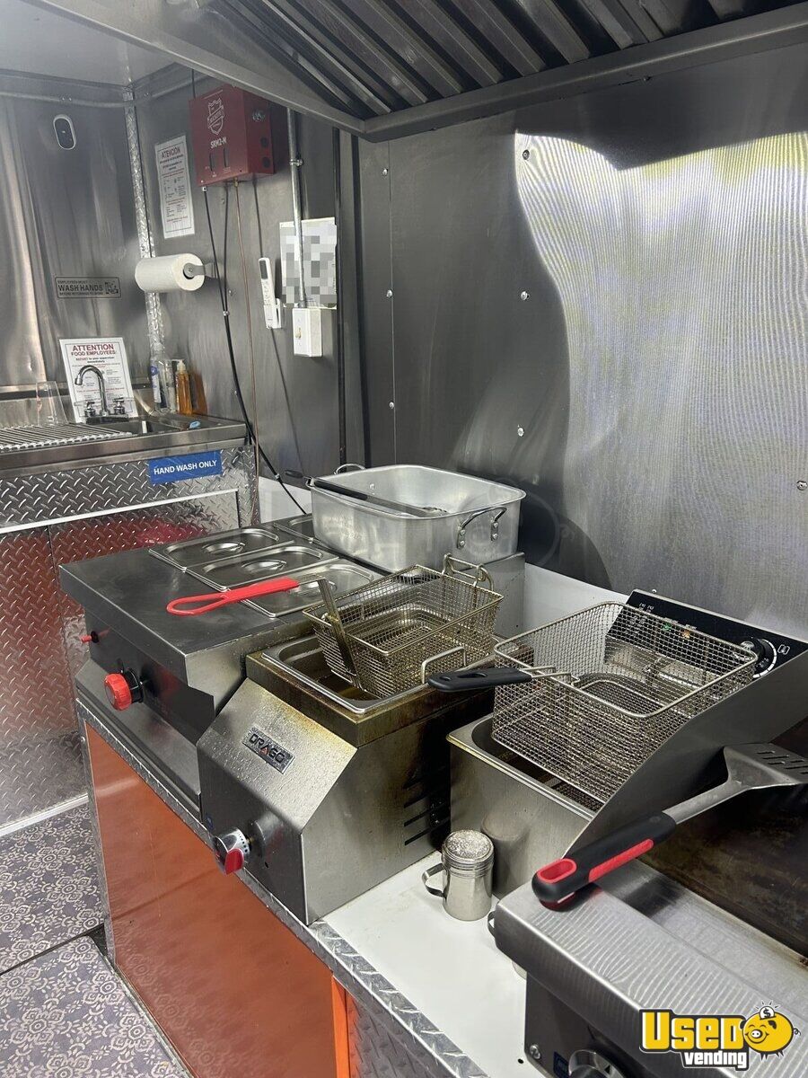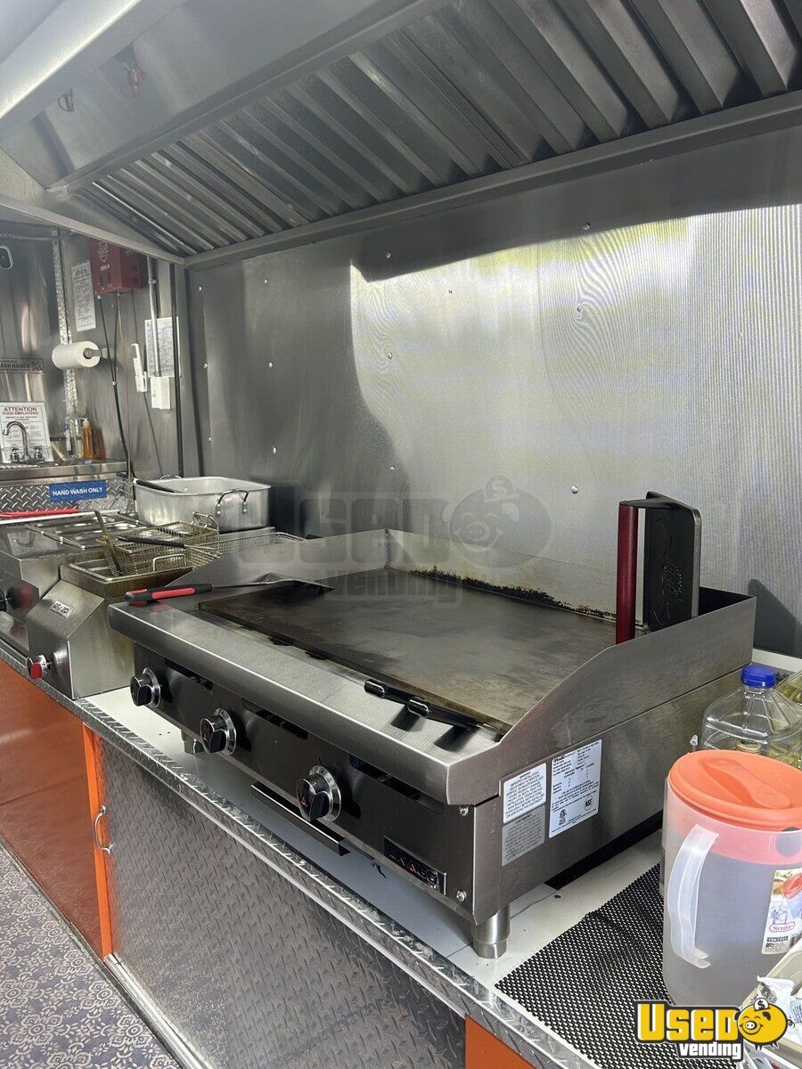 Standout features include: - Front air conditioning - Two concession windows with exterior counter - Stainless steel walls & diamond-plated aluminum flooring - Deep freezer, reach-in cooler & prep station cooler - Stovetop, flatgrill, fryer & steam table - 10ft exhaust hood with pro fire suppression system - Hot water heater, hand-wash, double & triple sinks - Fresh & gray water tanks - 50/30 amp electrical service with outlets & lighting