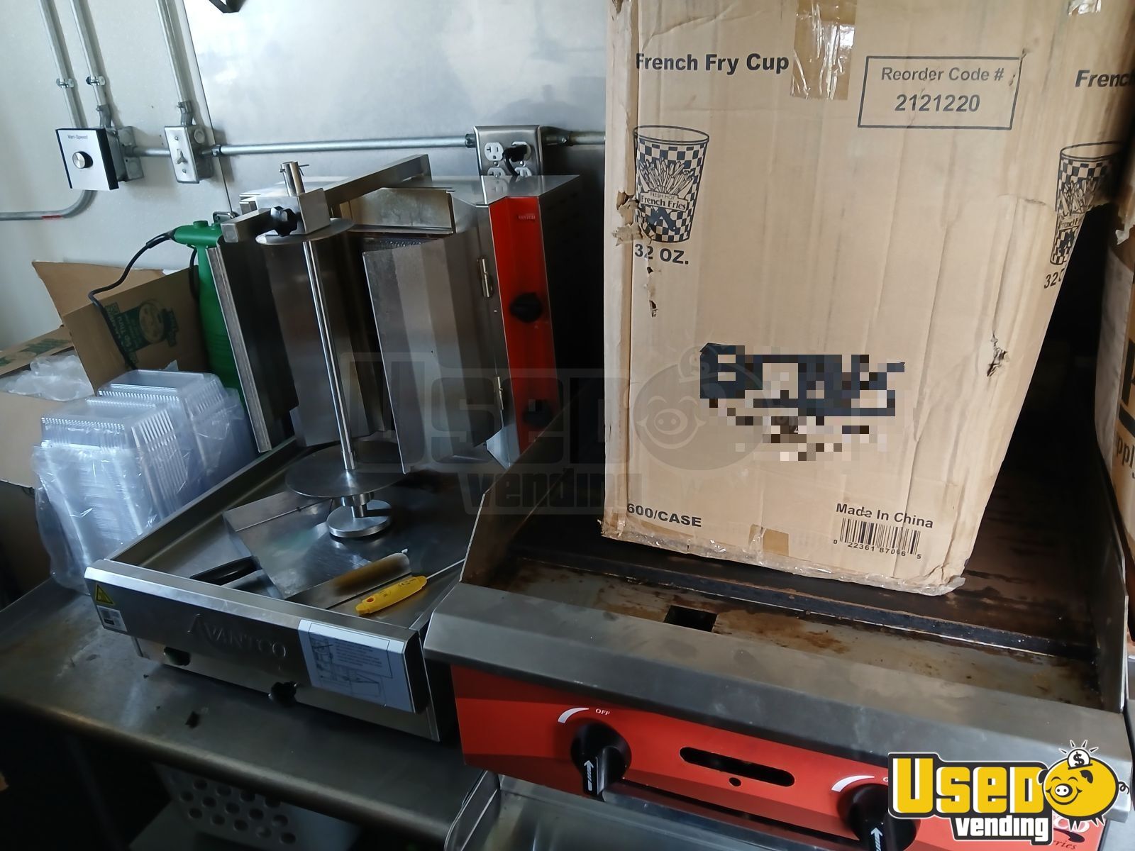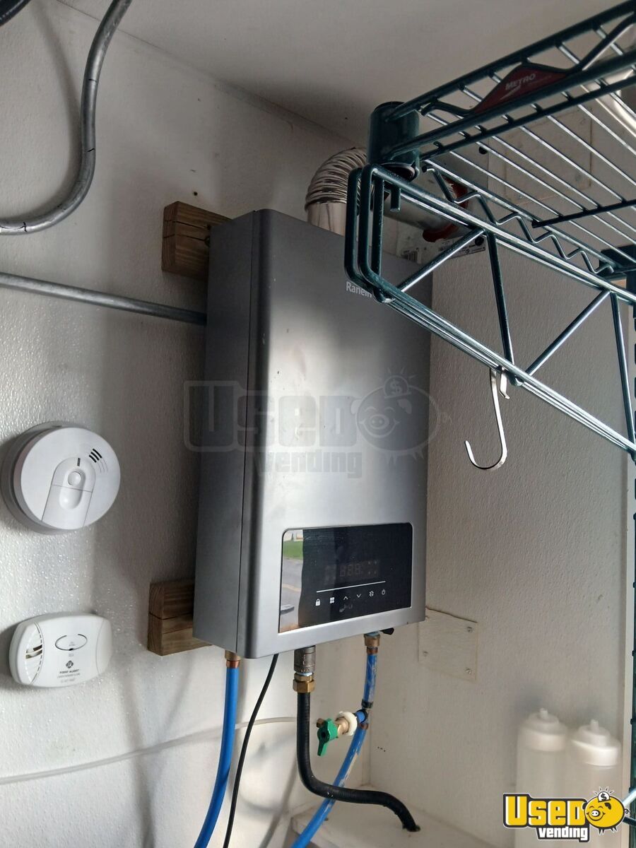 Standout features include: - 10' Hoodmart fire-suppression system - 120,000 BTU fryer, 24" flat griddle, dual gas burners, and 40 lb gyro turner - Large freezer, refrigerator, and 36" prep cooler - Triple sink, separate hand sink, and on-demand hot water system - 12,000 BTU air conditioner and LED interior lighting - 10,000-watt Husqvarna generator and dual 100 lb propane tanks - Ice shaver, block maker, and ample storage cabinets