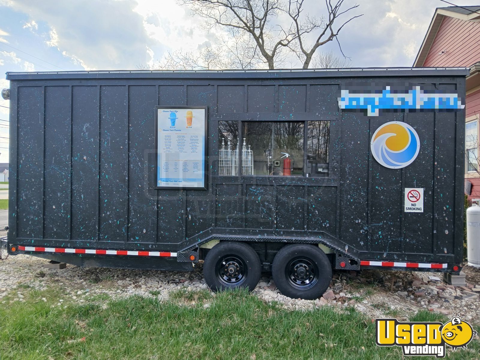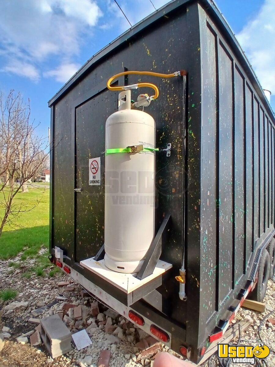 This 20' concession trailer offers a sturdy, well-built design with a nearly new professional kitchen inside. Used for only about 40 hours, it features robust construction, complete plumbing, and a powerful generator, ready to operate immediately for a variety of food ventures.