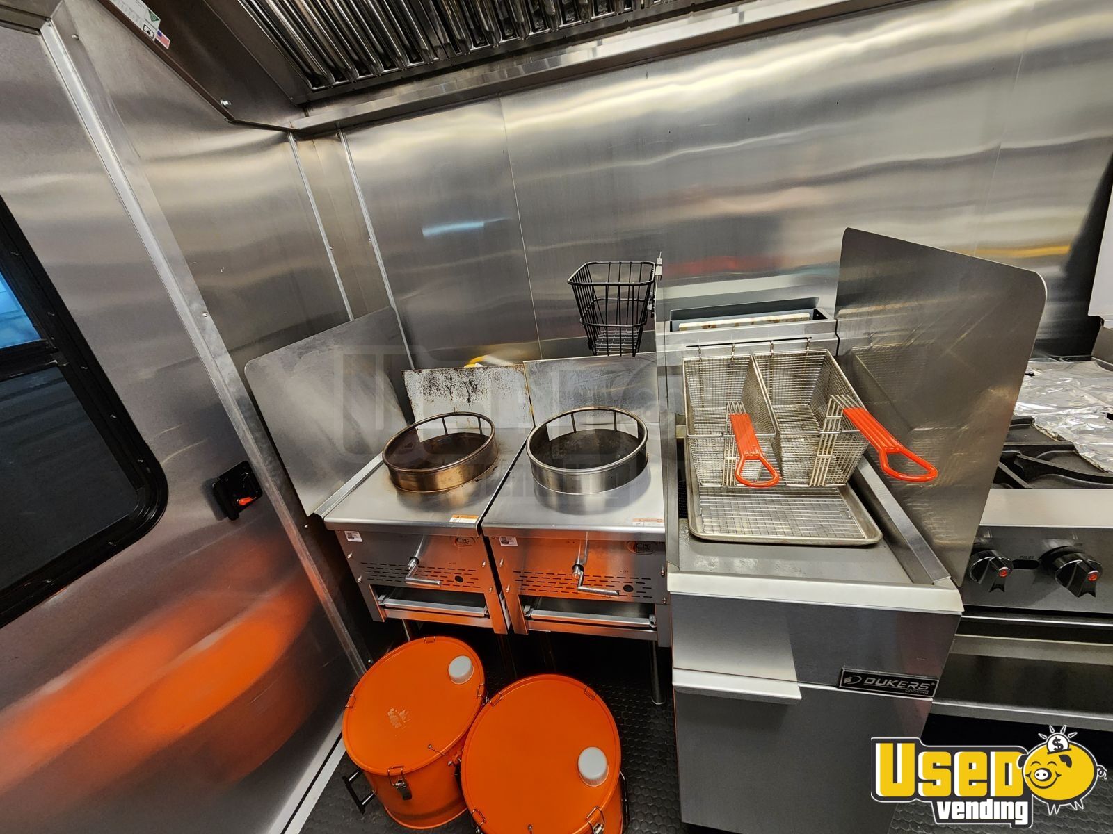 - Two high-BTU woks and 10' vent hood with fire suppression