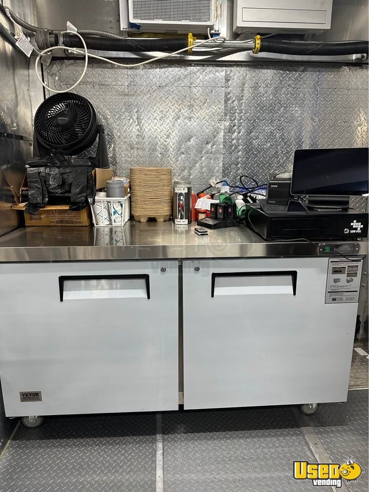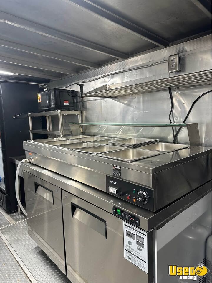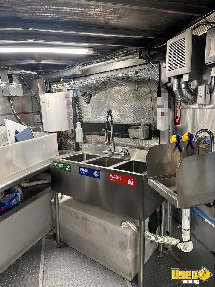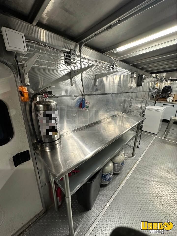 Standout features include: - 6-burner stovetop, two 24” ovens, and 24” flat grill - 60” air extractor with fire suppression system - Triple sink, water heater, and fresh/gray water tanks - Deep freezer, two 60” refrigerators, and glass door cooler - Exhaust hood, stainless walls, insulated interior - POS system and cash register