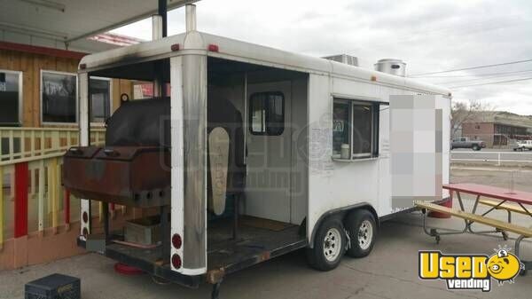 Barbecue trailer for sale in Wyoming!! BBQ system rotisserie included on rear porch. Perfect for a quick start selling barbecue or easy alteration to sell other foods! See details for equipment list and specifications.
