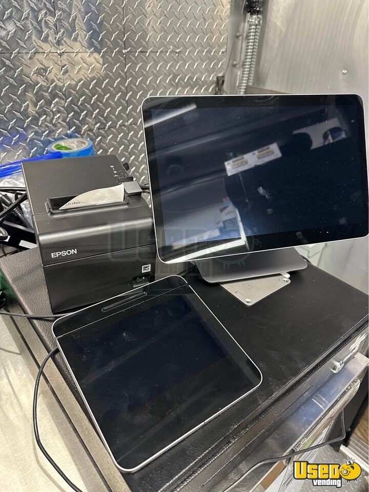 Standout features include: - 6-burner stovetop, two 24” ovens, and 24” flat grill - 60” air extractor with fire suppression system - Triple sink, water heater, and fresh/gray water tanks - Deep freezer, two 60” refrigerators, and glass door cooler - Exhaust hood, stainless walls, insulated interior - POS system and cash register