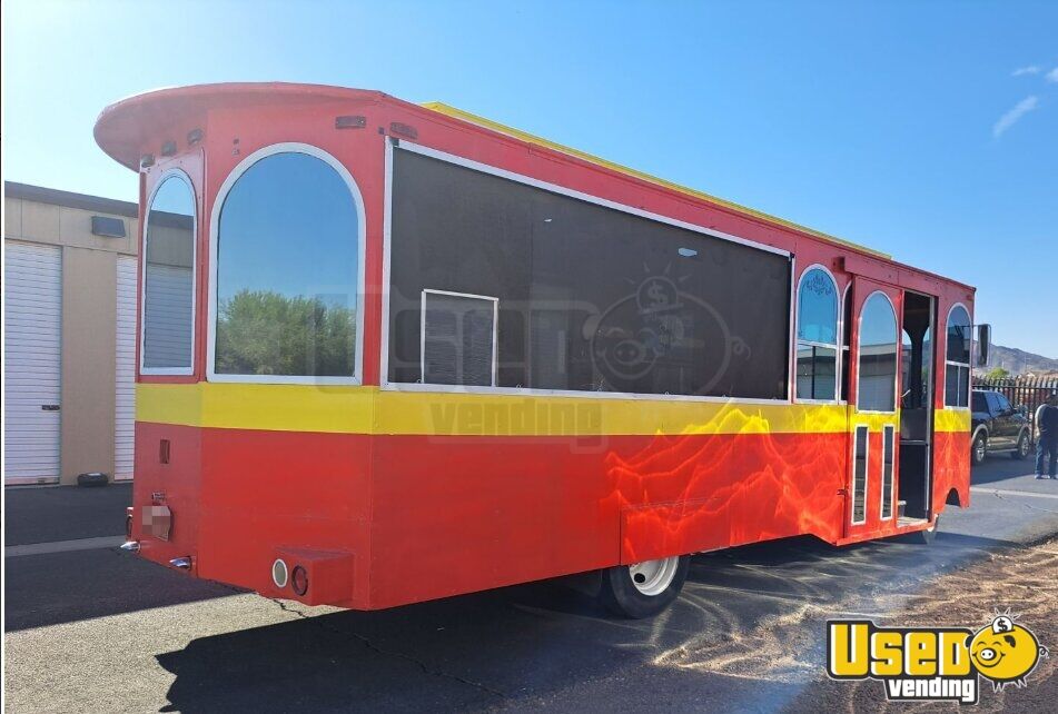 This trolley bus is halfway through a unique transformation into a food truck.