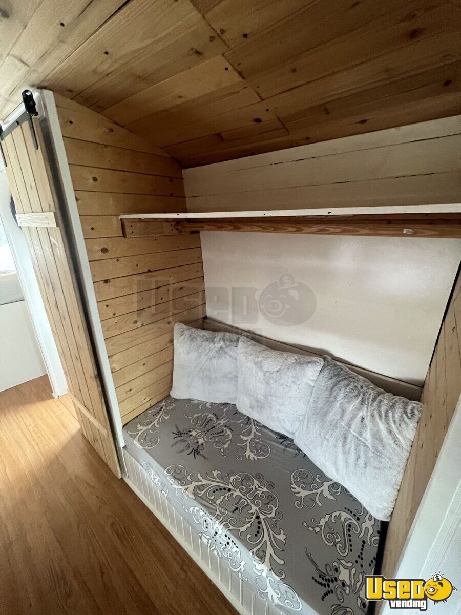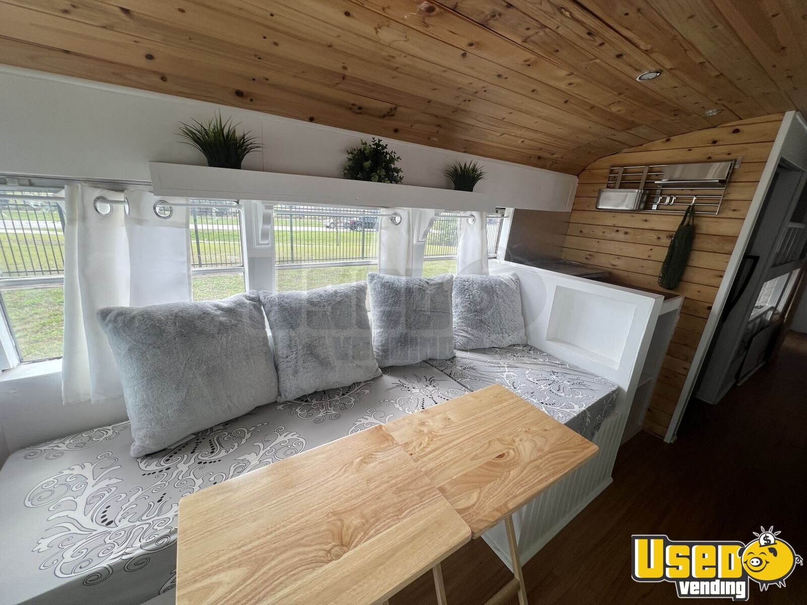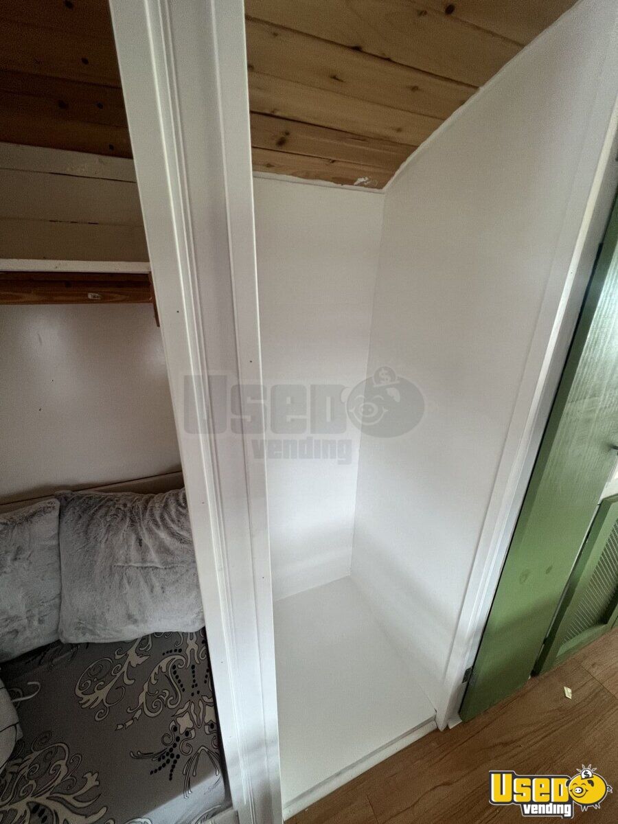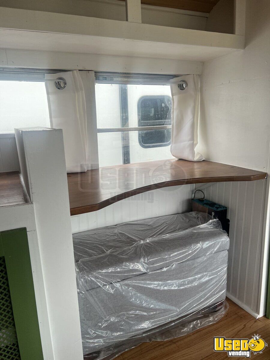 This unit is outfitted with a 50-amp electrical system with an inverter hooked up for AC/DC power, it functions like a more traditional home but with the excitement of a traveling vardo! The bus is equipped with two 40-gallon fresh water tanks, one 60-gallon grey water tank in the back for the shower, and one 25-gallon grey tank for the kitchen sink. The bus also features a drainage line for the holding tanks that have functioning gate valves and make more traditional living or camping that much easier.